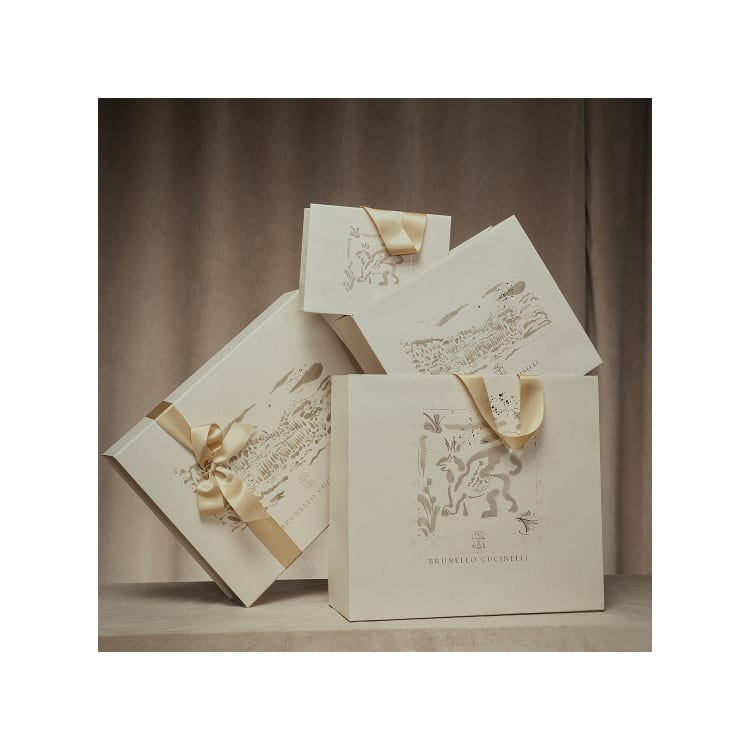 Die Atmosphäre der Festtage findet ihren Ausdruck in den eleganten Geschenkverpackungen von Brunello Cucinelli.