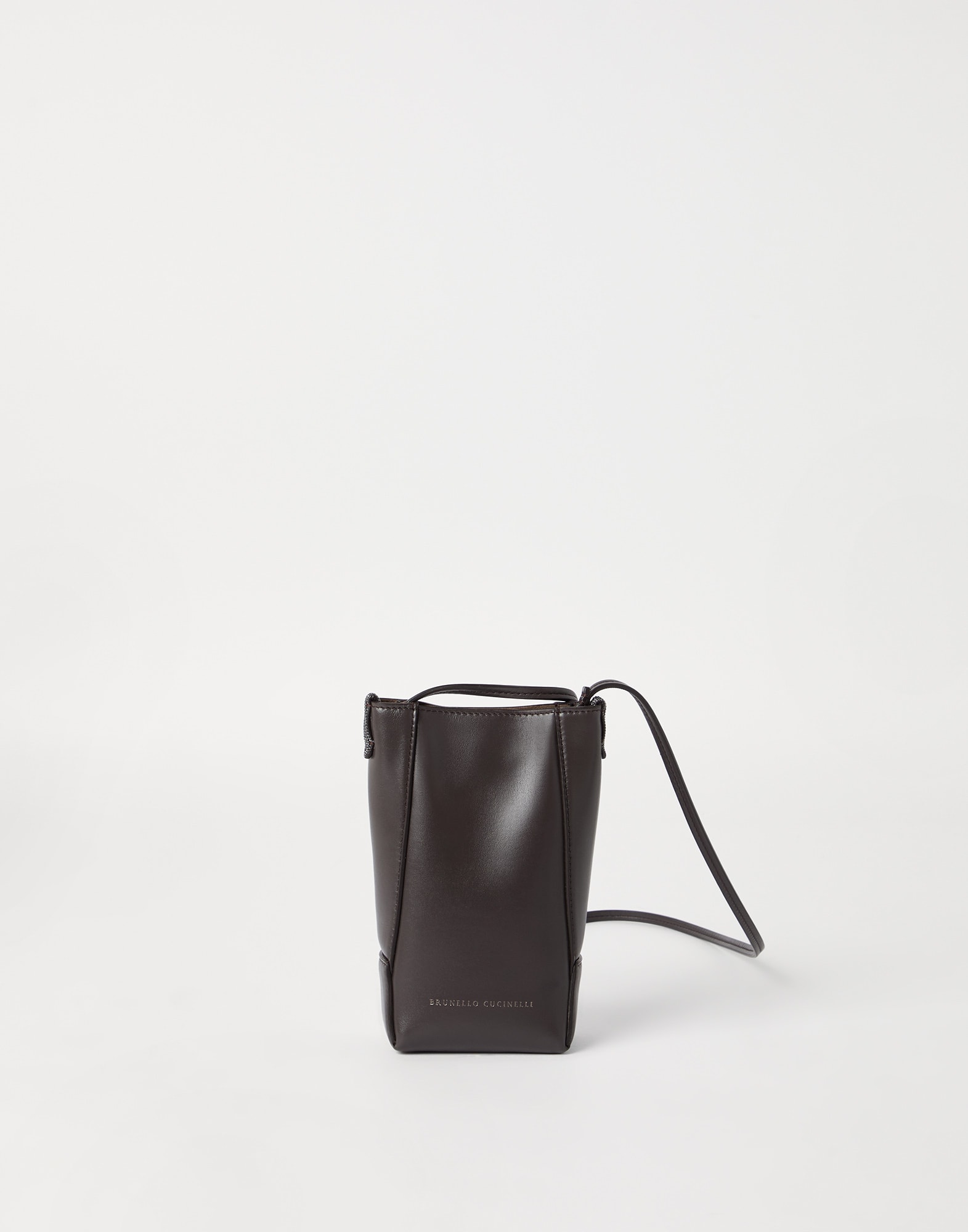 Ein neues Accessoire bereichert die Kombinationen der Saison mit einem praktischen und modernen Touch. Die BC Duo Handyhülle besteht aus hochwertigem, superweichem Kalbsleder in Saisonfarben. Die Kanten sind mit Reihen schimmernder Monili bestickt, die das Accessoire mit einem glamourösen Detail im authentischen Stil von Brunello Cucinelli komplettieren.