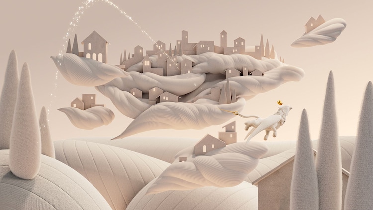 Special gift packaging by Brunello Cucinelli captures the elegance of the holiday season. A watercolor of the hamlet of Solomeo in neutral tones is set within a dreamlike landscape with subtle golden highlights.