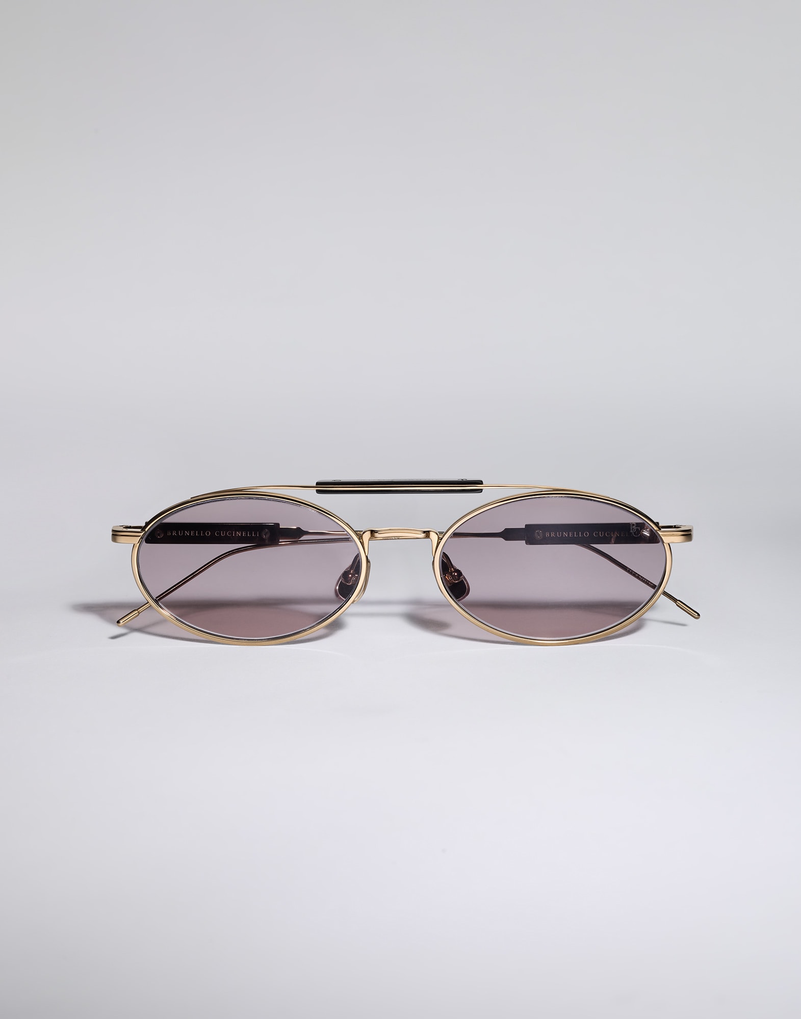 Titanium and horn sunglasses in Gold | Brunello Cucinelli