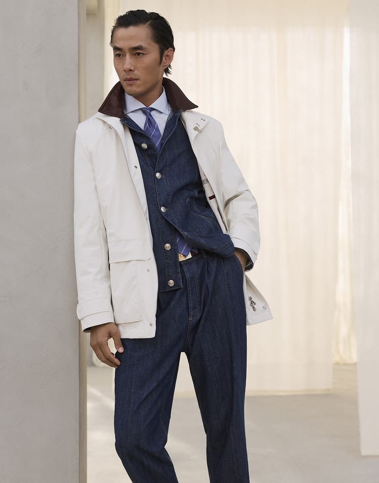 The Men's Outerwear Collection Brunello Cucinelli combines versatility and sophistication in garments designed to interpret contemporary style with elegance. The selection ranges from classic cuts to more dynamic shapes, featuring pieces such as coats, jackets, and padded styles, as well as more casual options like bombers, parkas, and trench coats. Each creation is crafted with artisanal mastery to offer comfort and style on every occasion.