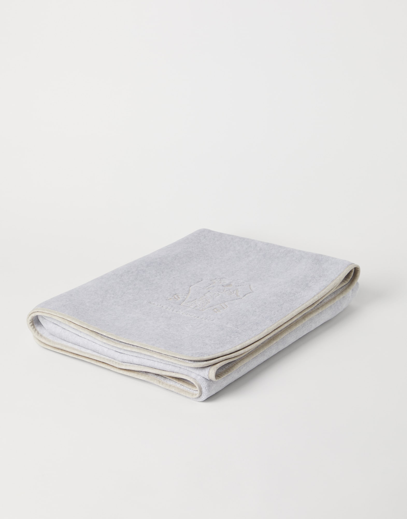 Perfect for moments of relaxation at home or outdoors, this bath towel is enriched with soft cotton terrycloth. The embroidery of the heraldic logo ties back to the same color as the linen fabric used along the edges to create texture and color contrasts in true Brunello Cucinelli style.