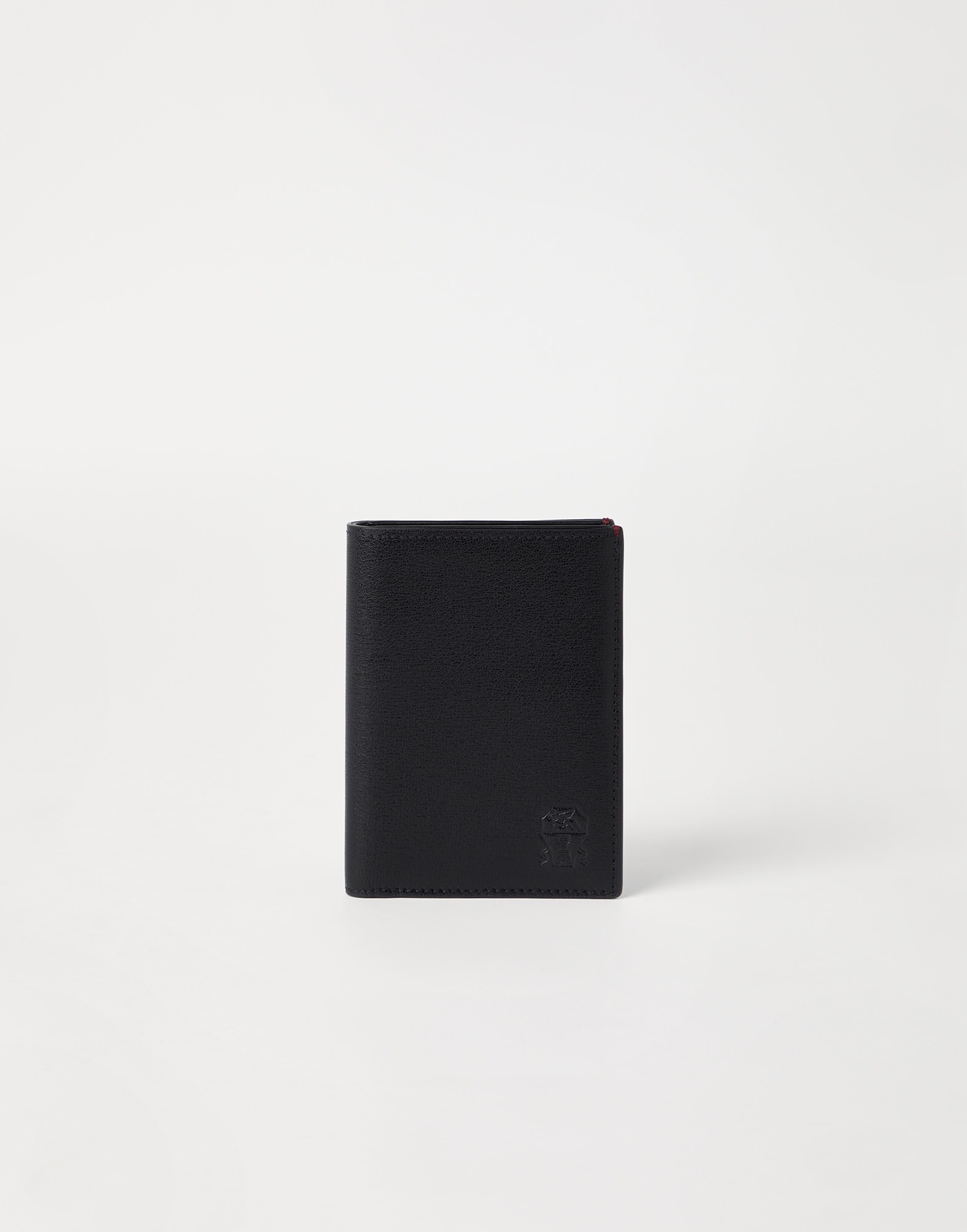 An elegant vision of the male wardrobe takes shape through refined materials and finishes in a selection of leather accessories characterized by essential lines and versatile style, such as this capretta passport holder. The grain is fine and delicate, ideal for enhancing the season’s colors, while the leather’s characteristic lightness highlights the artisanal construction of this accessory. The design is completed with functional details such as card and identification slots, and a dedicated compartment for banknotes.