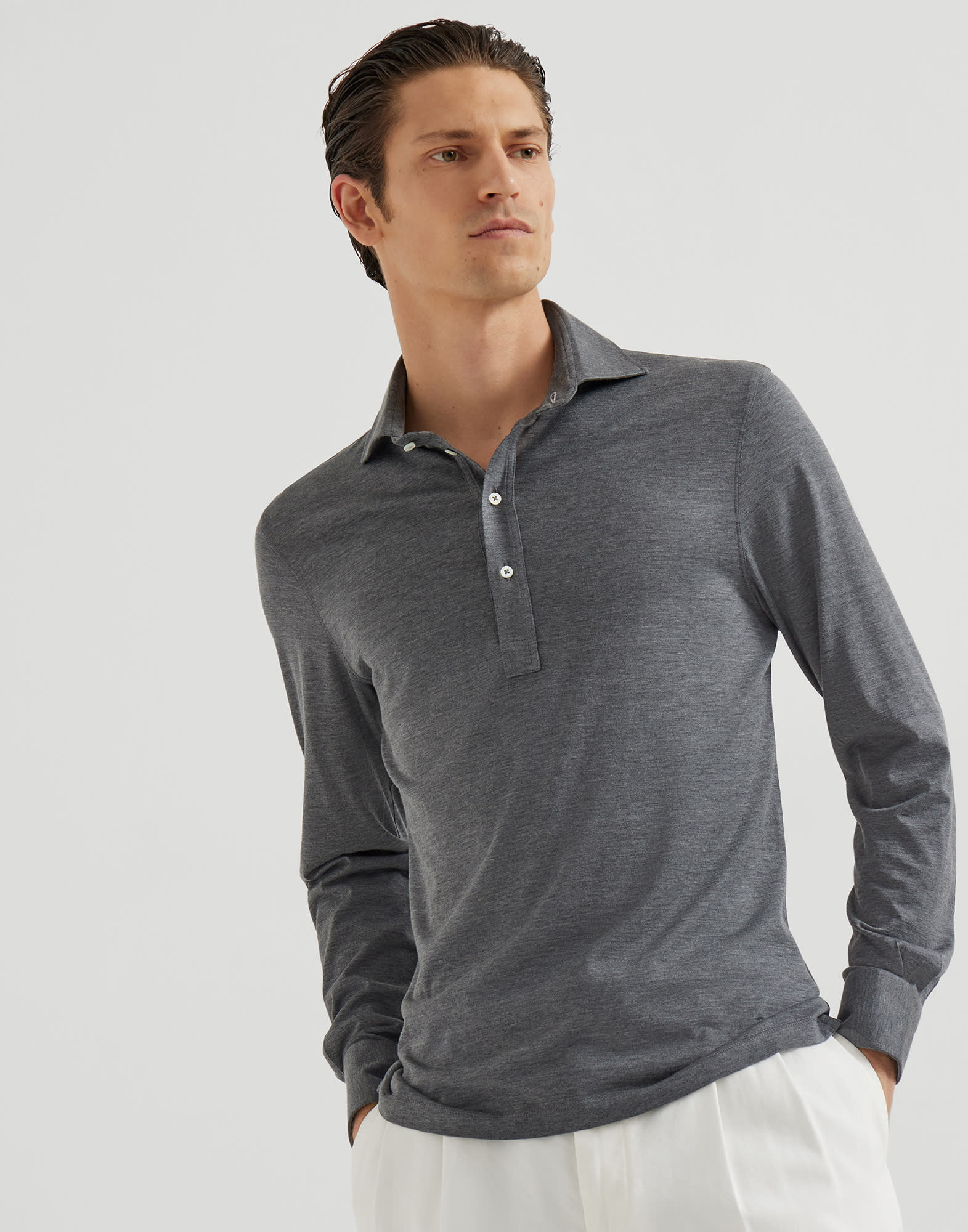Jersey polo shirt for Man in Dark Grey | Brunello Cucinelli