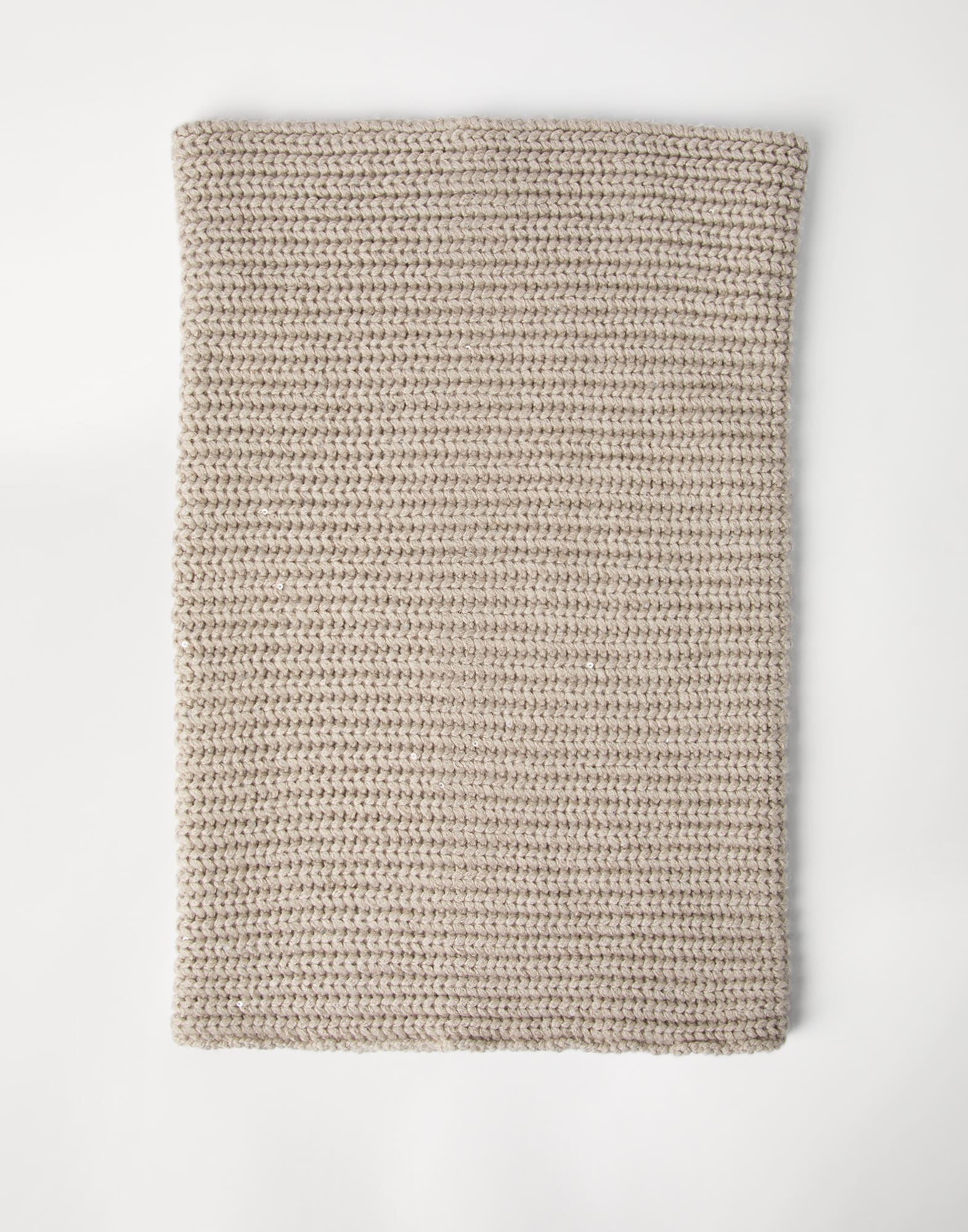 Ideal for facing the winter with elegance, refined Dazzling knit enriches this neck warmer with a shimmering note. The classic rib knitting is embellished with a cascade of sequins that spread sparkling reflections in true Brunello Cucinelli style.