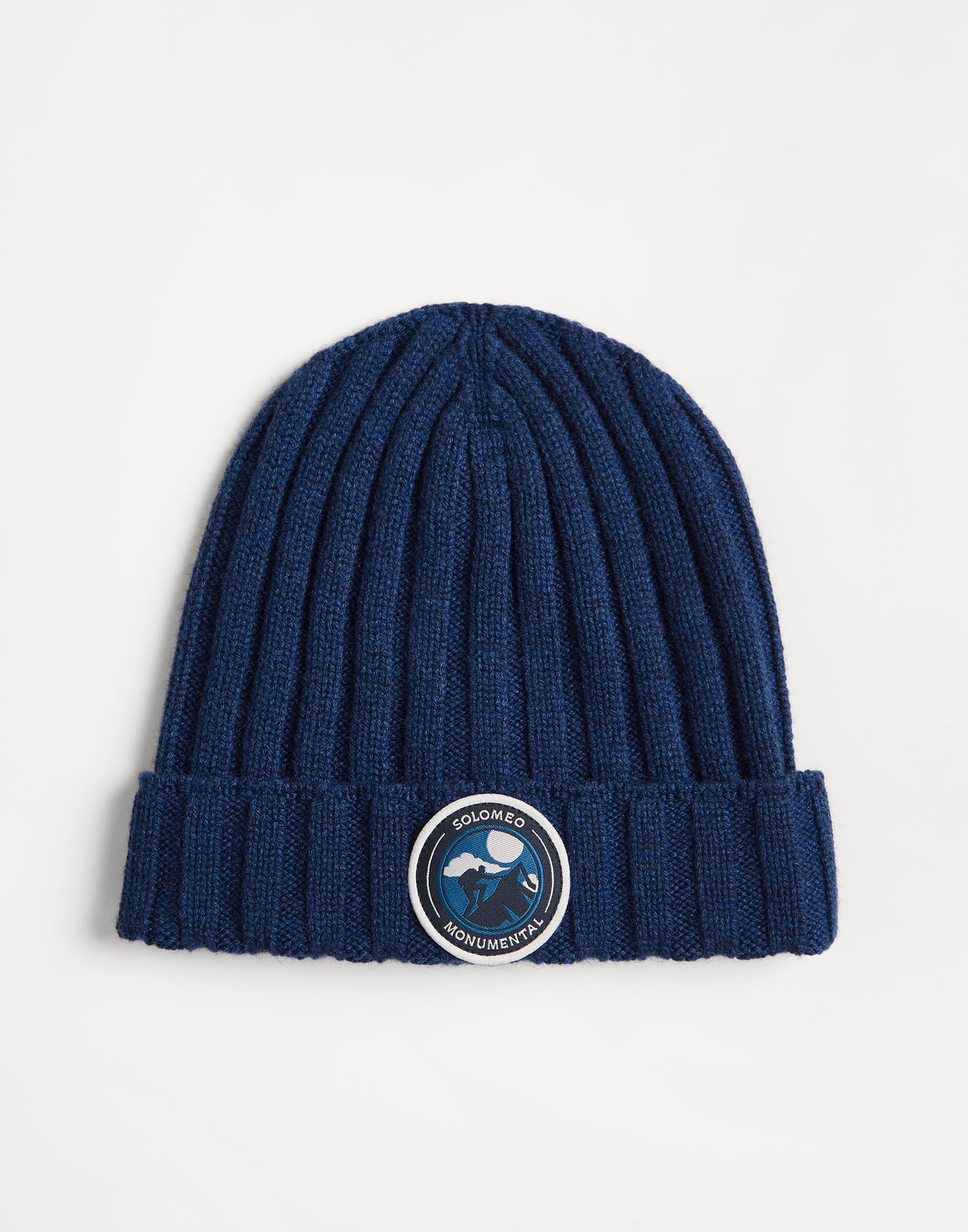 Cashmere rib knit beanie with patch