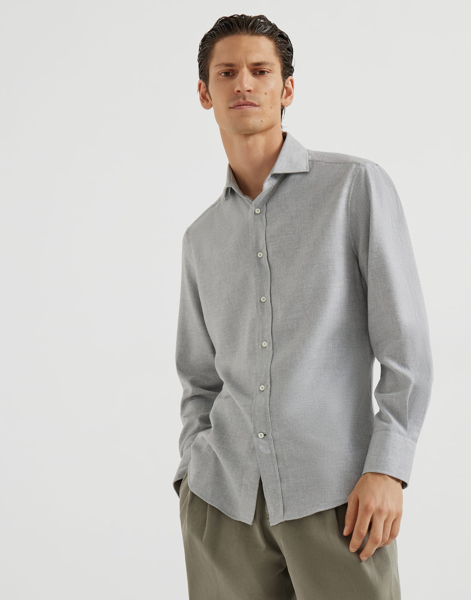 Flannel chevron shirt for Man in Grey | Brunello Cucinelli