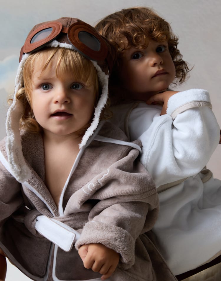 Accessories designed to accompany every baby's first months with comfort and tenderness: changing bags, beanies, gloves, socks, terrycloth items and soft puppets combine functionality with attention to aesthetic in every detail.