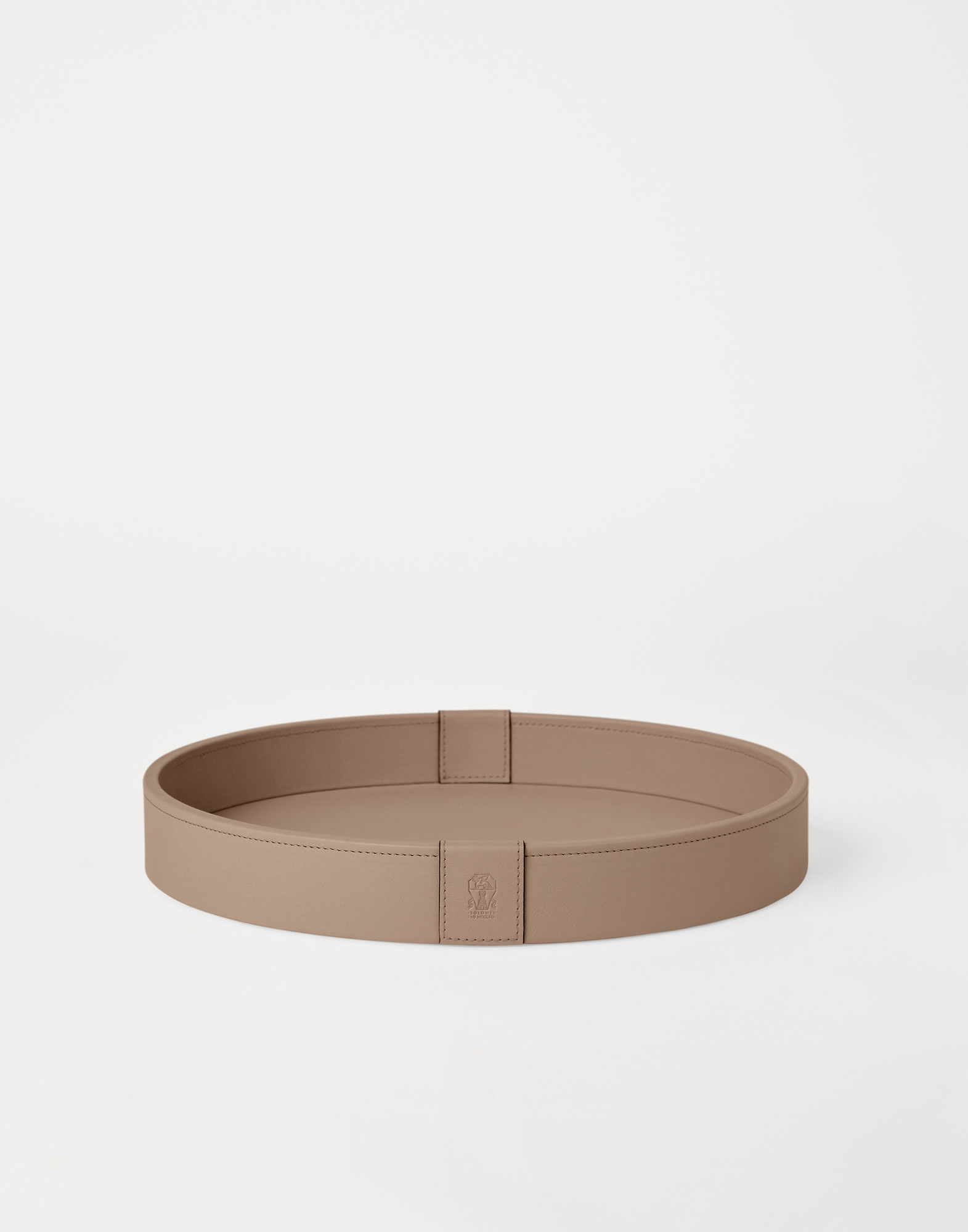 Made of wood, this small tray is handcrafted and covered in leather to protect the supporting surface from possible scratches and to add a precious material contrast.