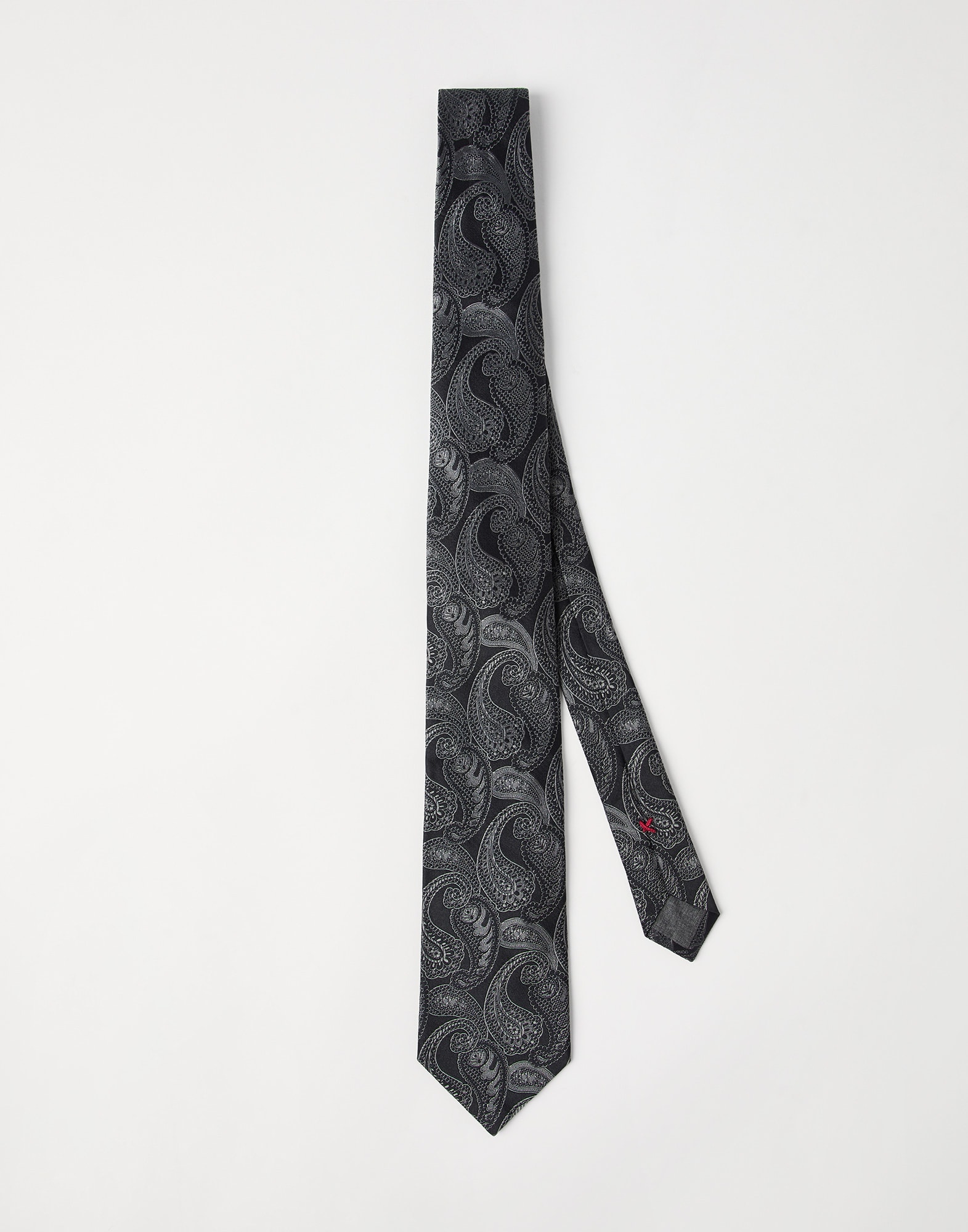 Paisley silk tie for Man in Dark Grey | Brunello Cucinelli
