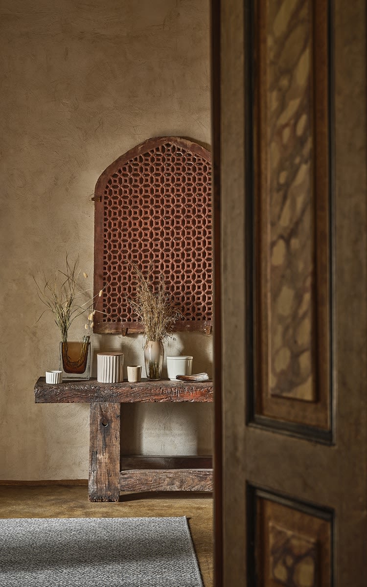 The table and the kitchen welcome precious creations and textiles, speaking of a dimension of sharing that is typical of togetherness.