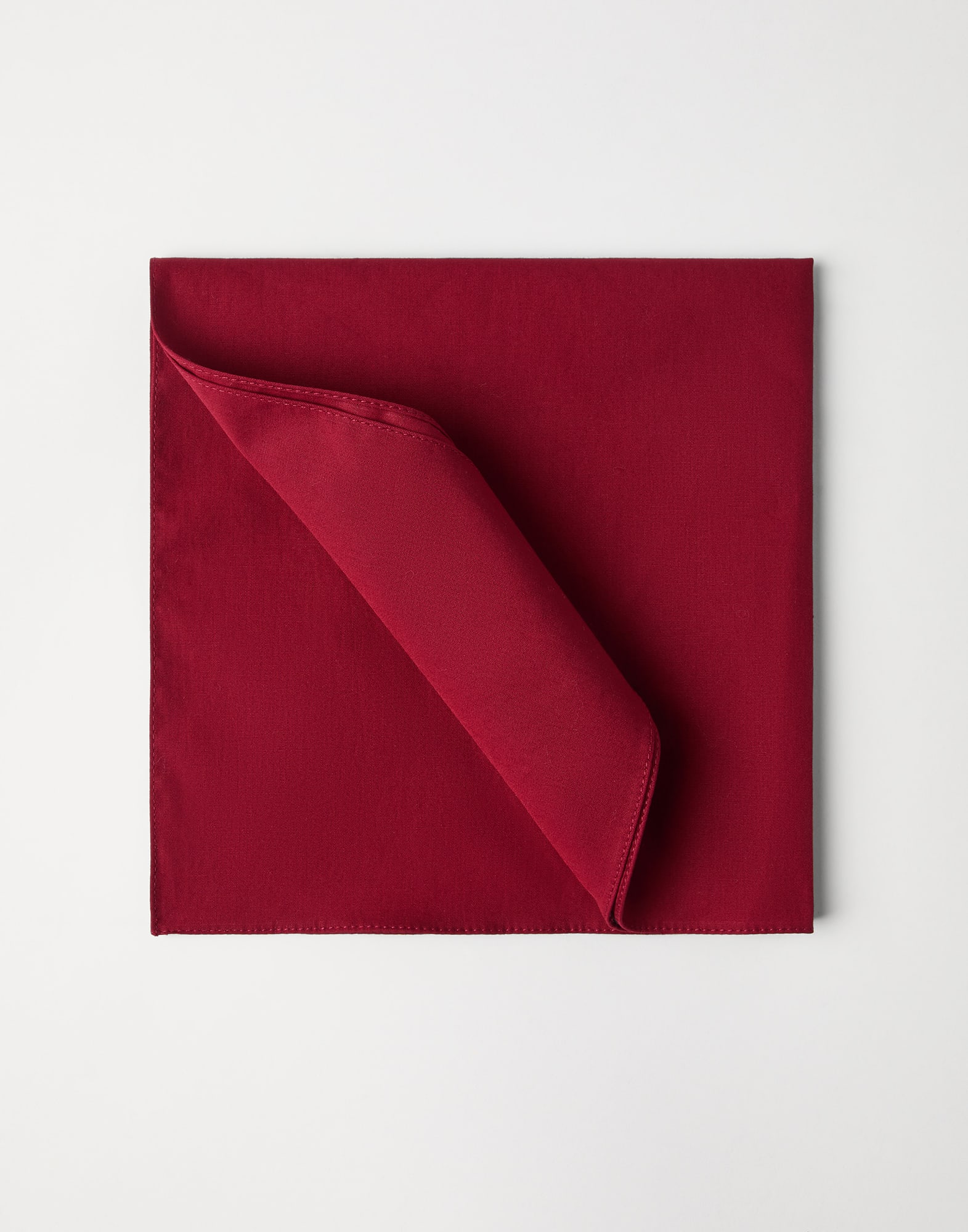 This refined red cotton twill pocket square is the must-have touch of color to complete the sophisticated style of the season’s suits and tuxedo jackets.