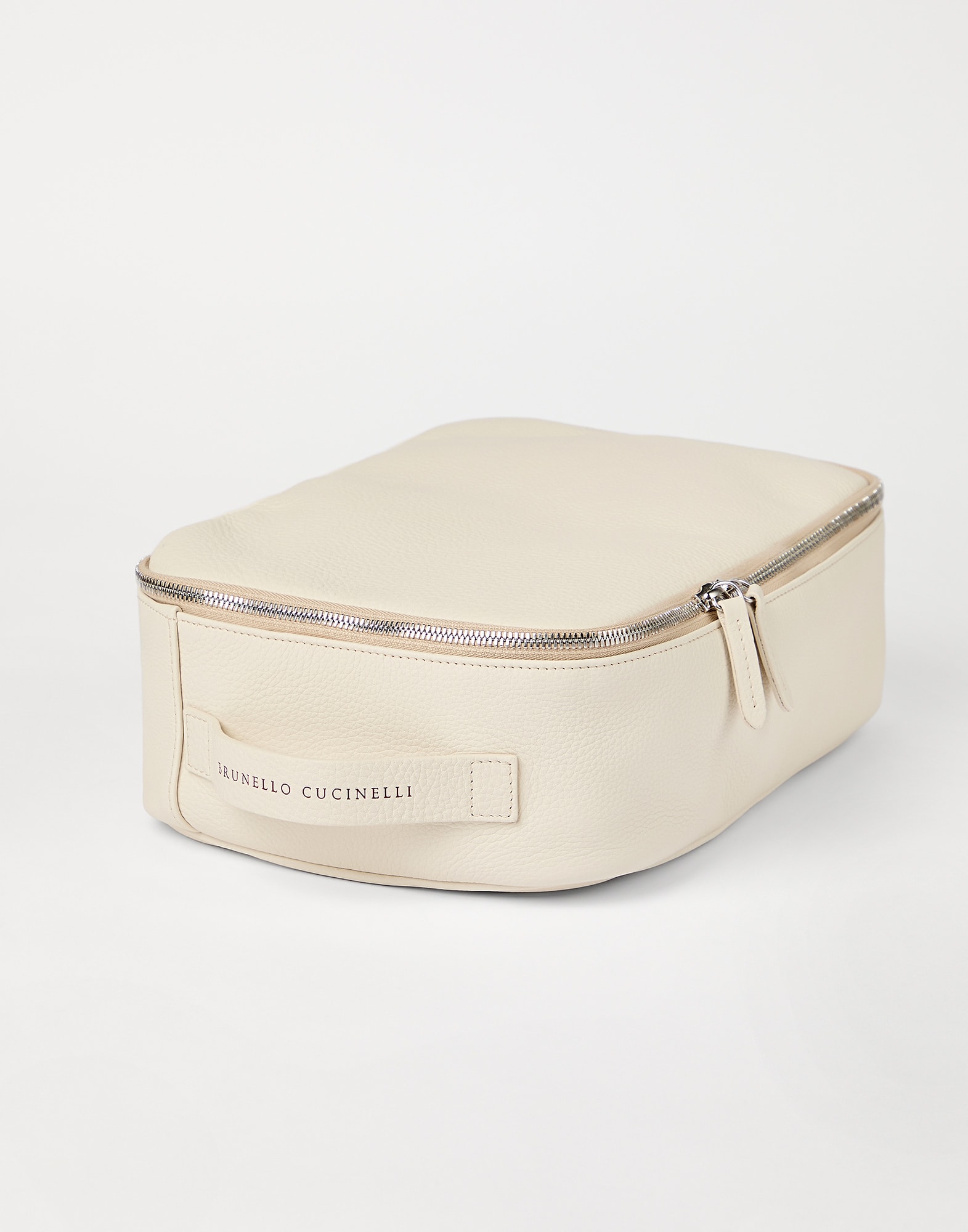 Manufacturing of the grained calfskin enriches the texture with slightly uneven coloring, giving the look of the leather a “vintage” flavor. On the inside, the accessory is lined in water-resistant fabric to protect its contents from the light contact with liquids.