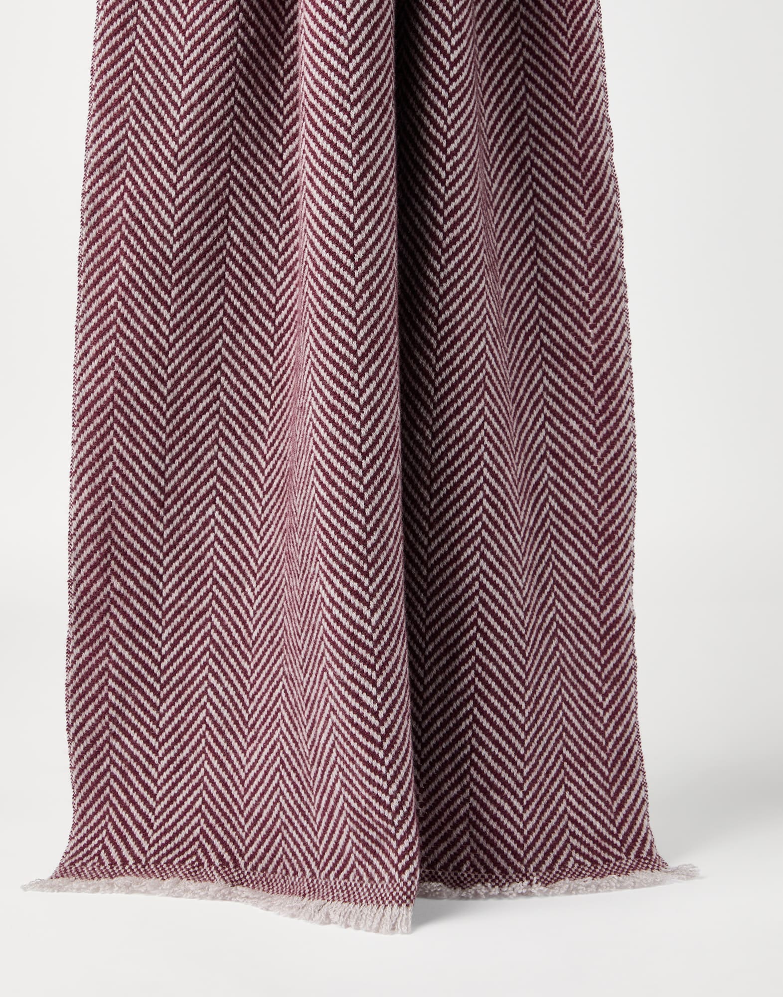 The excellence of Brunello Cucinelli cashmere enhances the essential style of this scarf, providing ideal comfort and protection during the colder months. The distinct chevron weave defines the accessory's sartorial inspiration, completed with fringed edges.