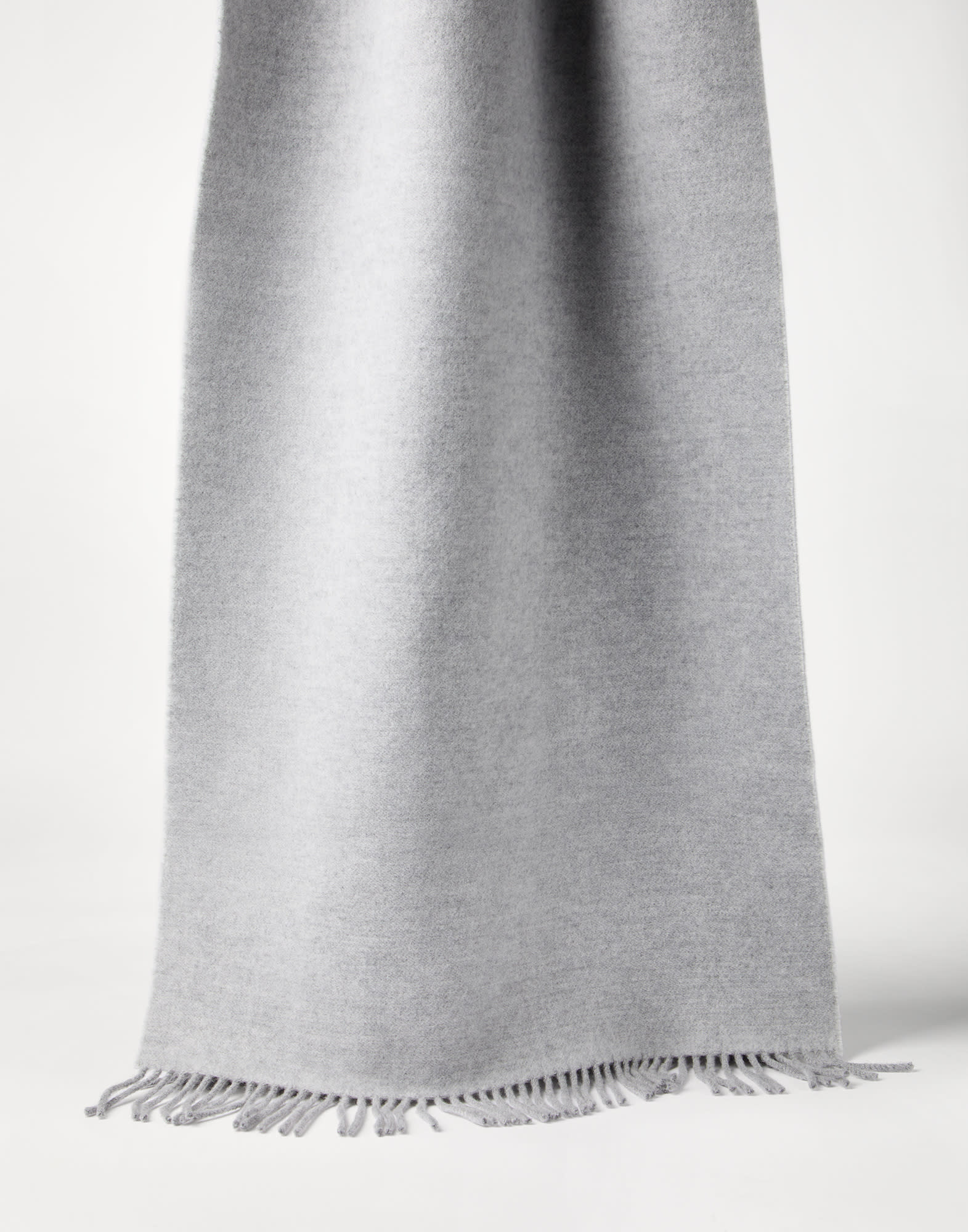The excellence of refined fabrics enhances the essential style of this wool and cashmere knit scarf. Perfect for the winter, the precious yarn provides a comfortable feeling of softness. The fringe and hood complete the style with a casual touch.