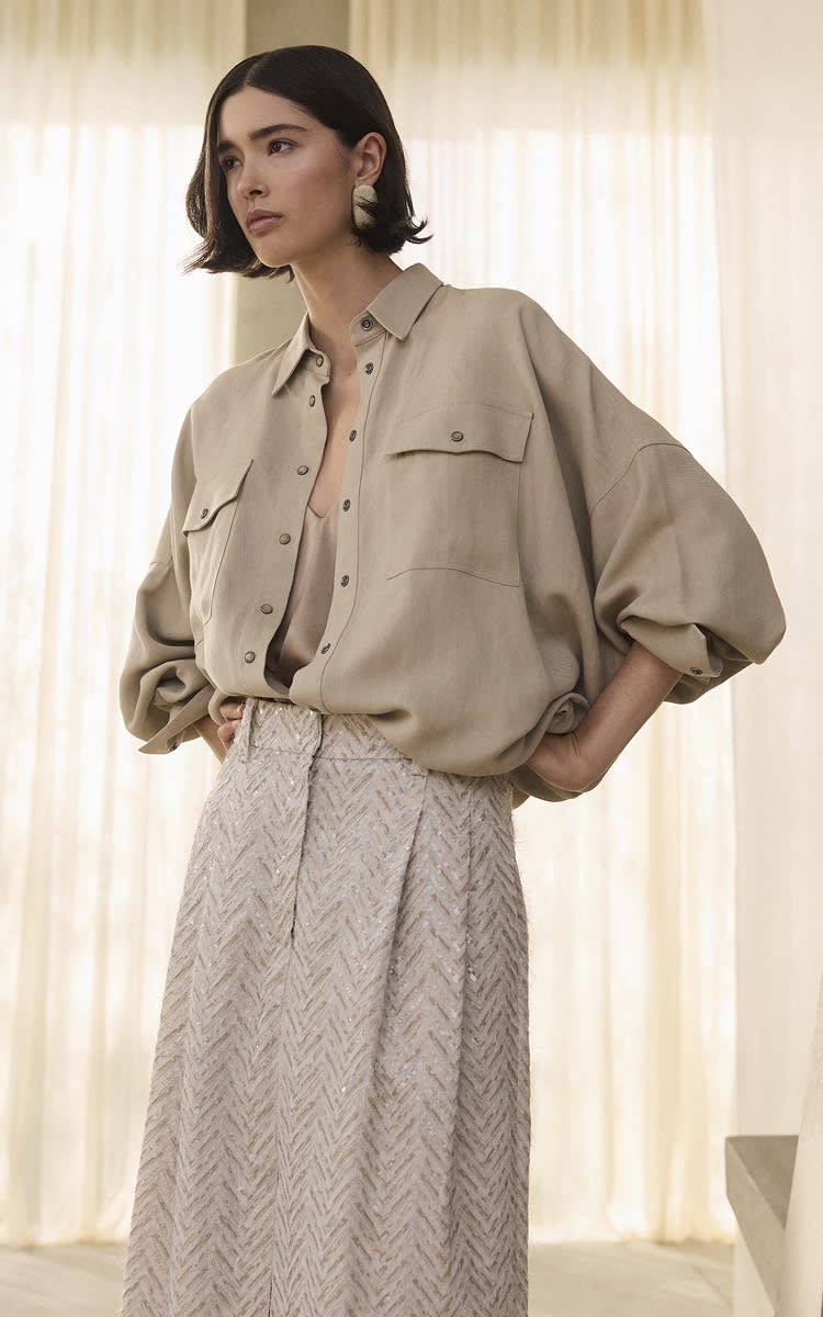 VIEW 21 MOREOutfits designed for the evening embody a style shaped by the harmony of simplicity and sophistication. Essential lines and luminous details become ideal companions for informal gatherings, offering a spontaneous elegance that accompanies women with charm into the pleasant hours of the evening.
