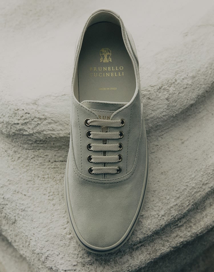 VIEW 21 MOREThe Brunello Cucinelli Spring–Summer 2026 Men’s Collection, Elements Resonance, brings together fine materials and tones inspired by the four natural elements. Tailored jackets and trousers with new fits, shirts, T-shirts and outerwear define elegant yet comfortable silhouettes, enhanced by the lightness of linen, cotton and wool. Suede footwear such as loafers, together with practical accessories, complete contemporary total looks.