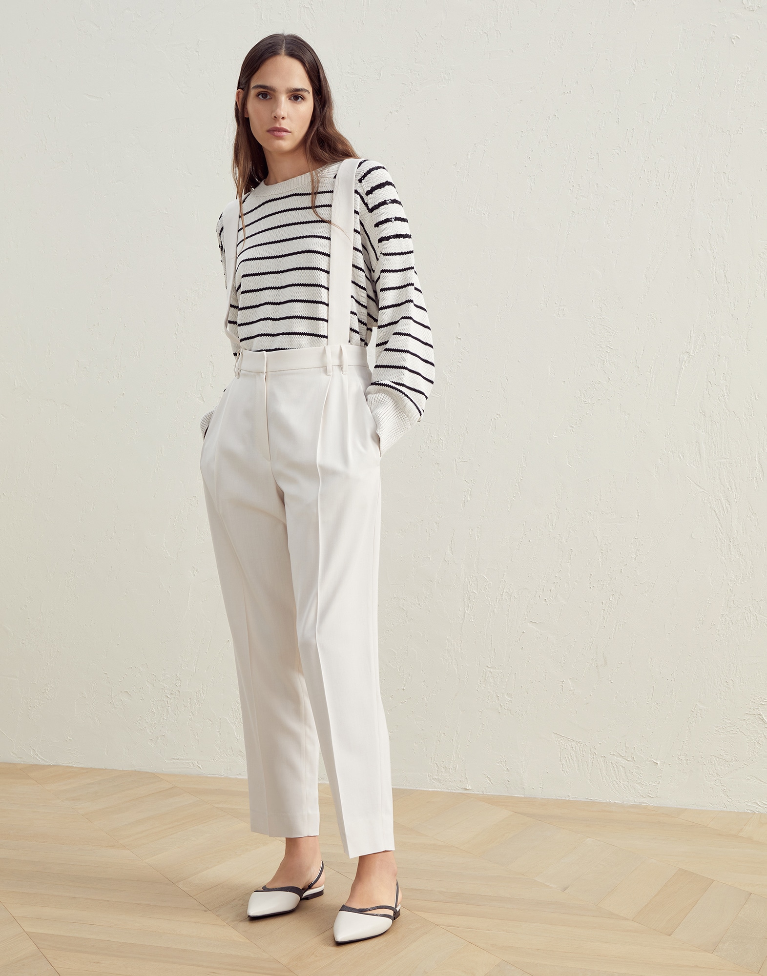 VIEW 21 MORECasual elegance and contemporary tailoring define the Brunello Cucinelli Ready to Wear Women's collection. Designed to enhance every occasion, this clothing features fine materials and refined details that express an authentic, timeless taste. Versatile and sophisticated pieces celebrate the Italian art of dressing with natural femininity, blending comfort, style, and artisanal excellence in every creation.