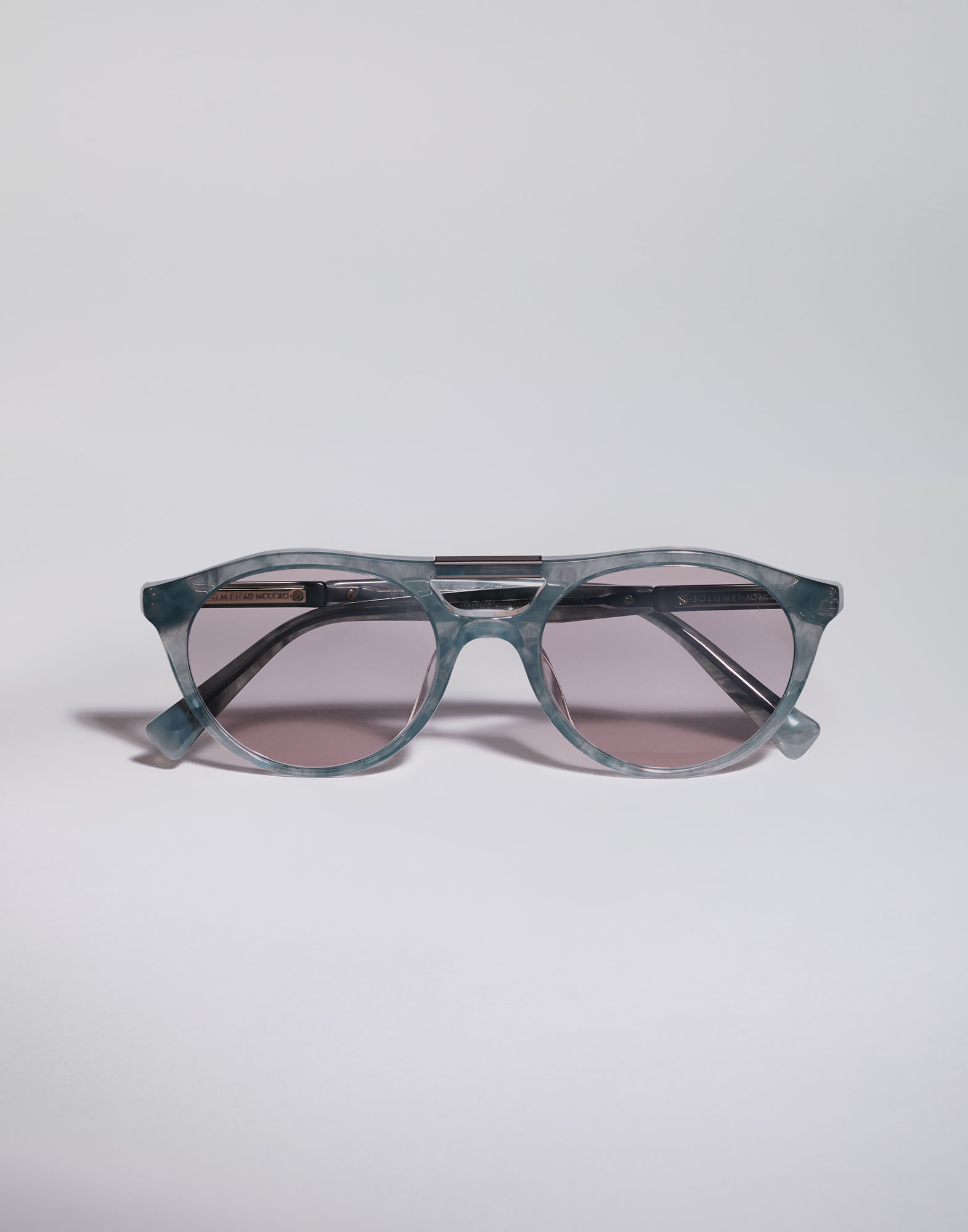 The frame is made from acetate, a classic thin and lightweight eyewear material. Crystal sun lenses provide UV protection.