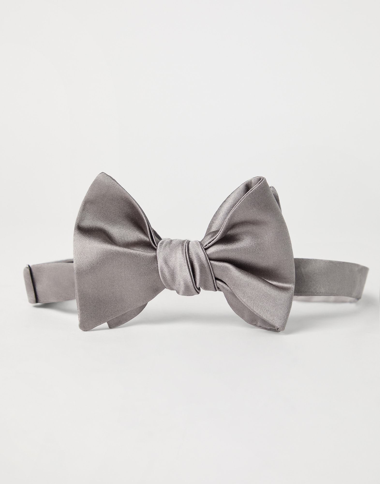 An essential accessory for evening events, the cotton and silk satin bow tie completes tuxedos with classic flair. This accessory, which must be tied, is adjustable thanks to a convenient hook-and-loop closure behind the neck.