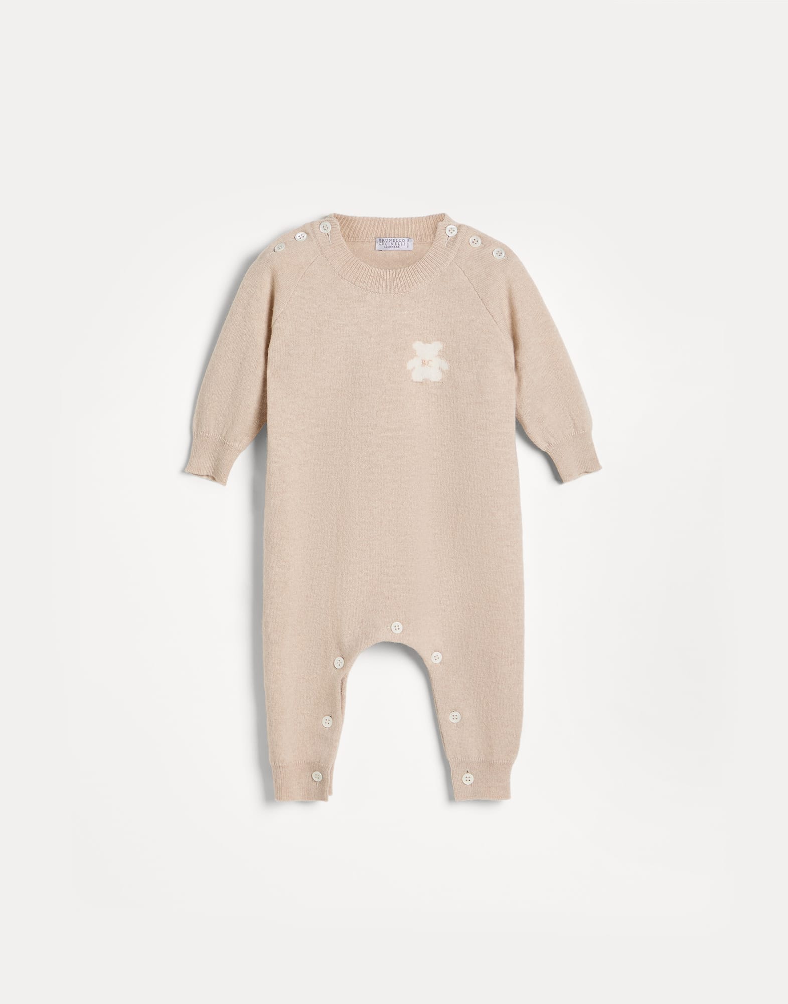 Baby Bernie knit coverall for Baby in Beige | Brunello Cucinelli