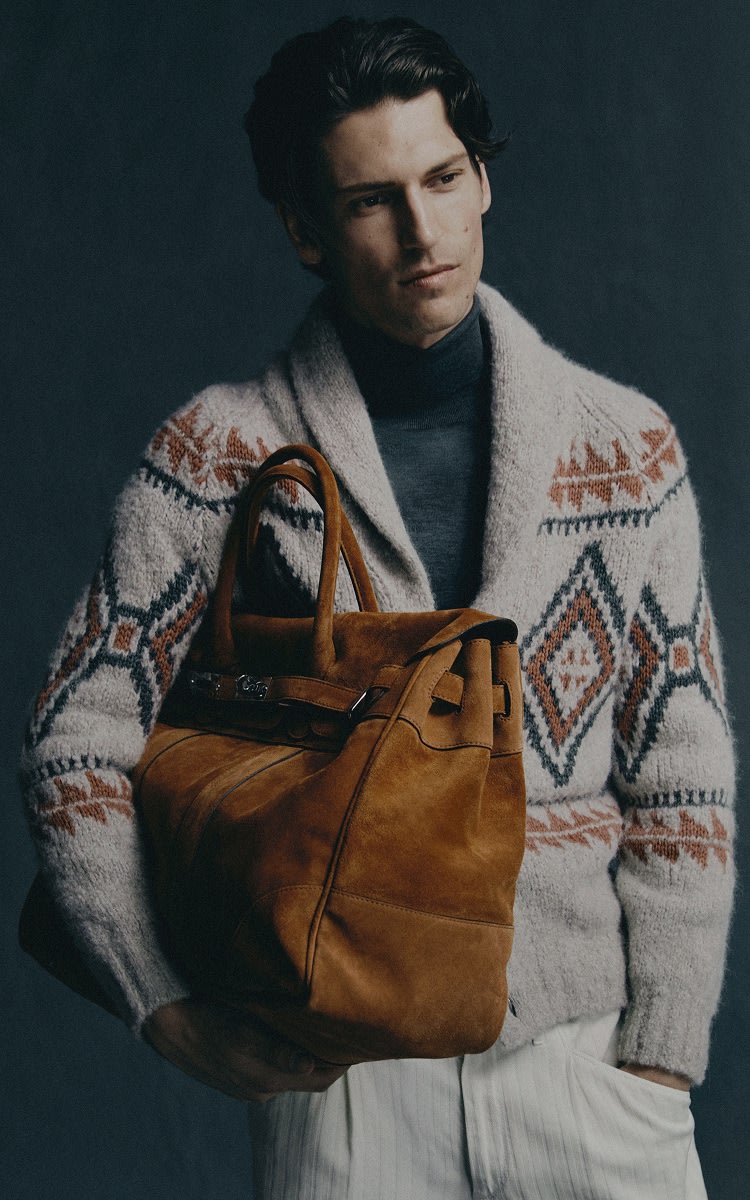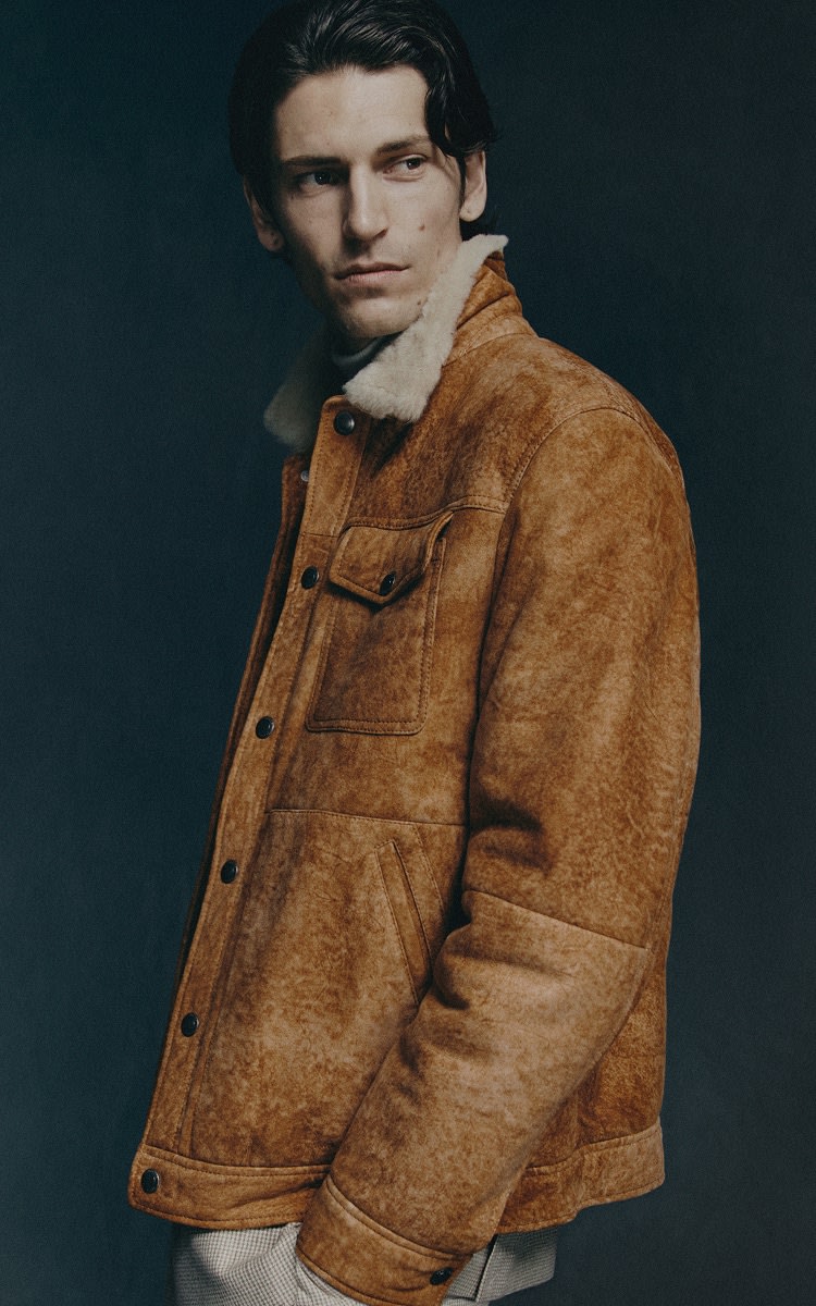 VIEW 5 MOREThe Men’s Winter Edit Capsule Collection 2025 blends elegance with contemporary style for the winter. Suits and blazers in new textures, shearling and flannel outerwear, and knitwear in alpaca, wool, and cashmere are paired with timeless patterns such as Prince of Wales and houndstooth. Deep burgundy shades add sophistication and versatility to every look.