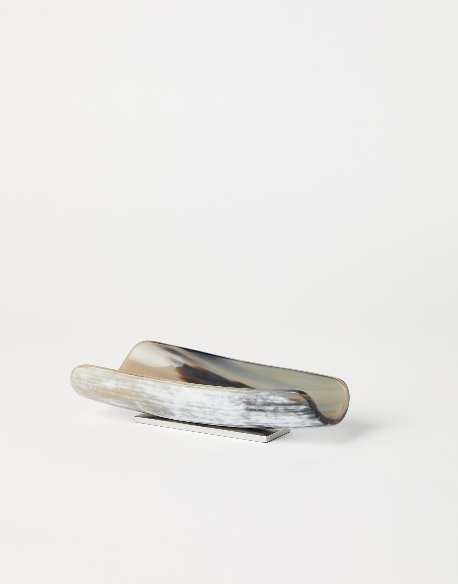 This small buffalo horn and Brass tray is an elegant accessory that will enrich a table with the refined and always different shades of the precious natural material, helping to make each piece unique.