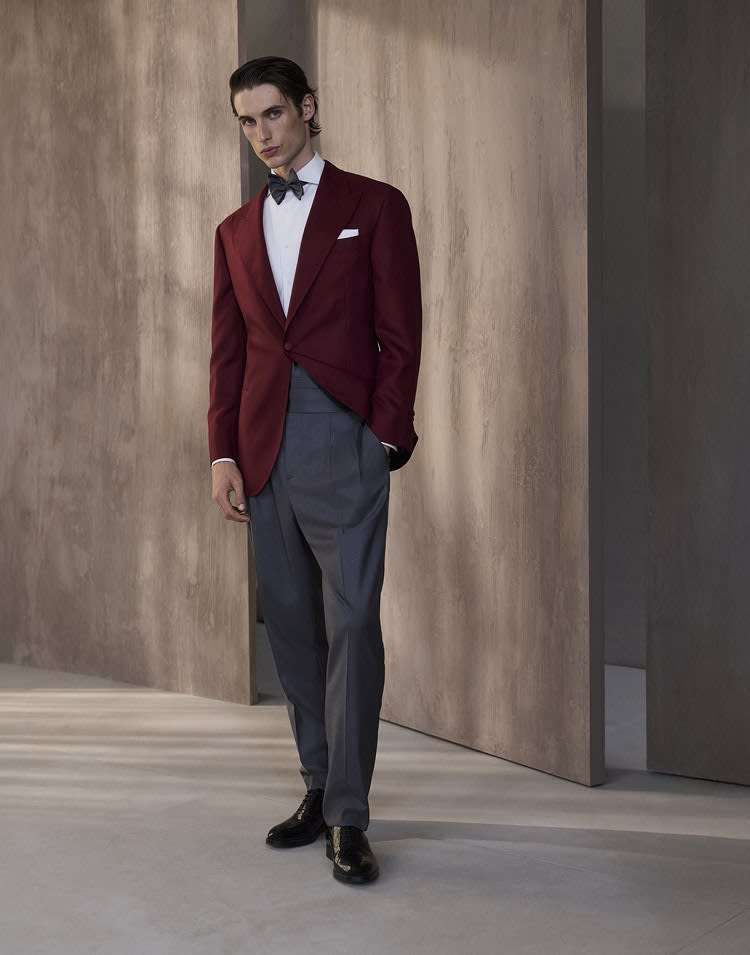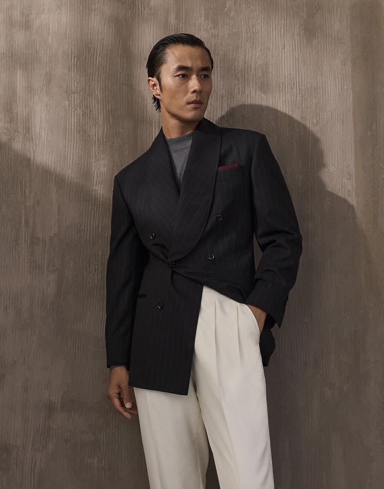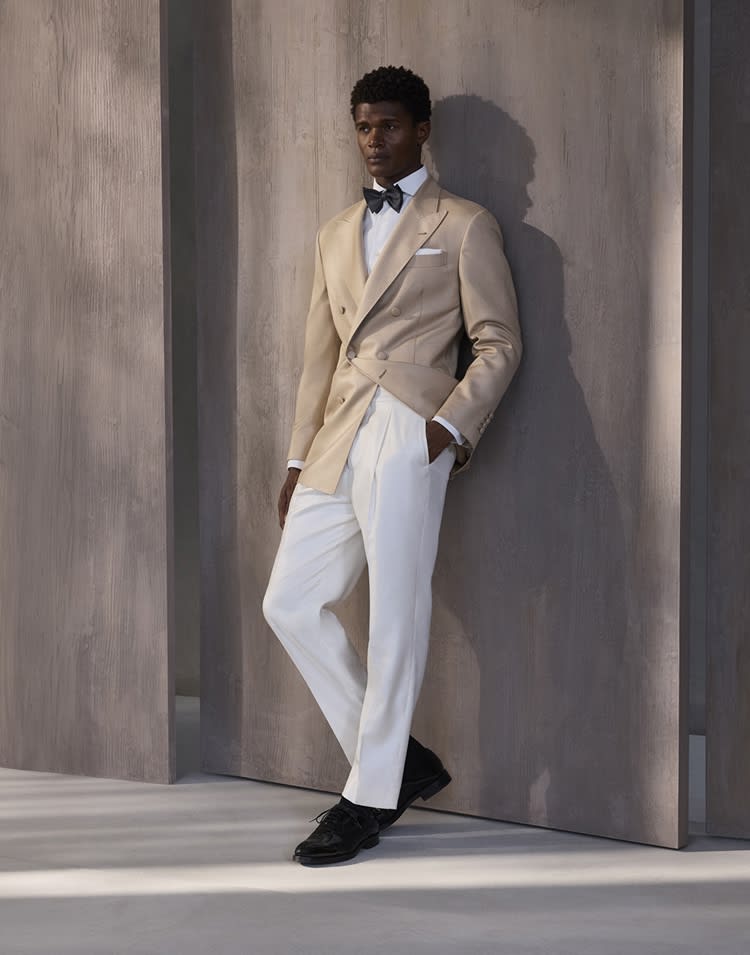 The timeless style of Tuxedos meets the sartorial care and elegance of the Brunello Cucinelli Men's Collection. Clean lines, refined fabrics, and understated details define garments designed for the most formal occasions, where every element conveys sophistication and character.