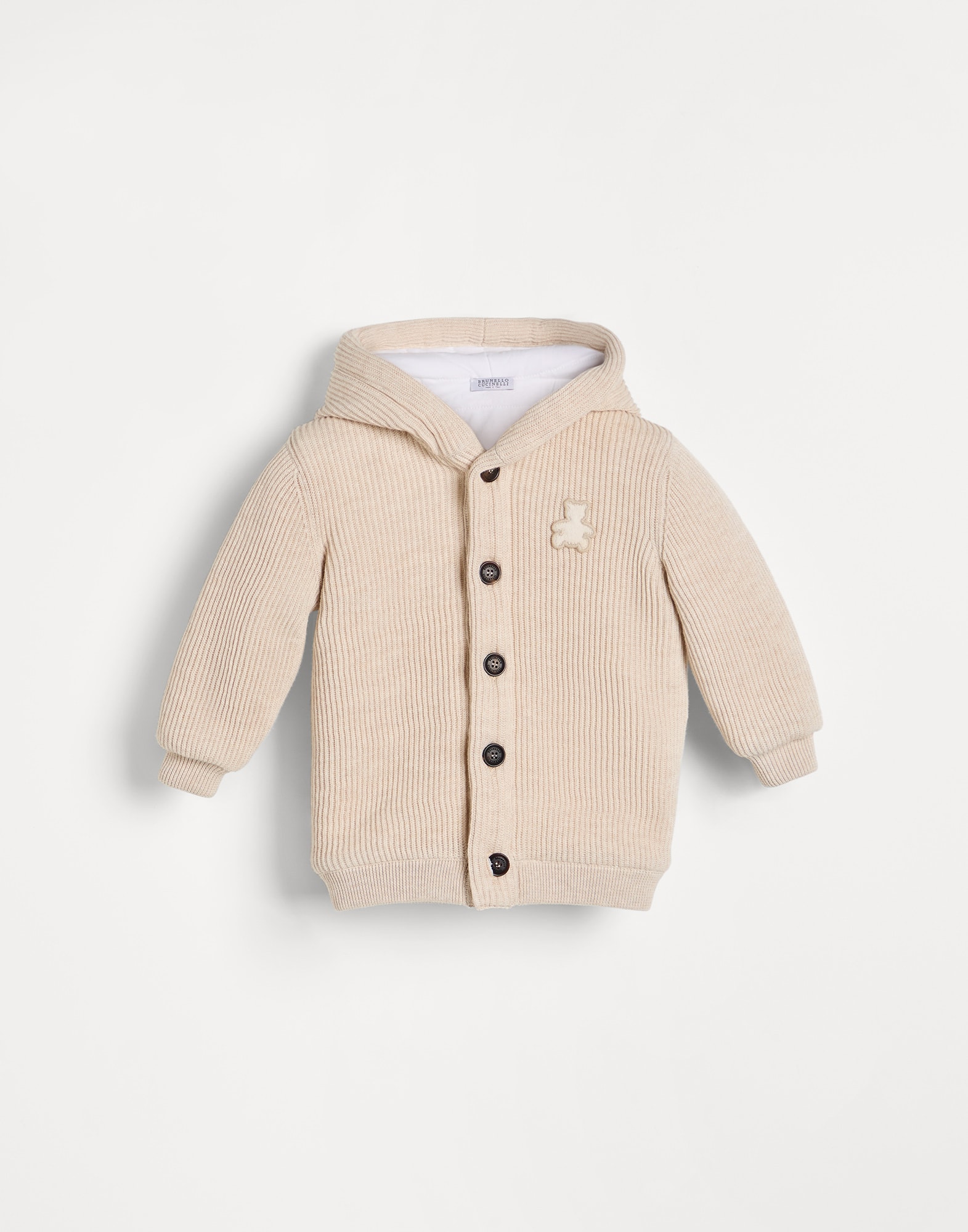 Cotton English rib knit hooded Baby Bernie cardigan with Thermore® padding