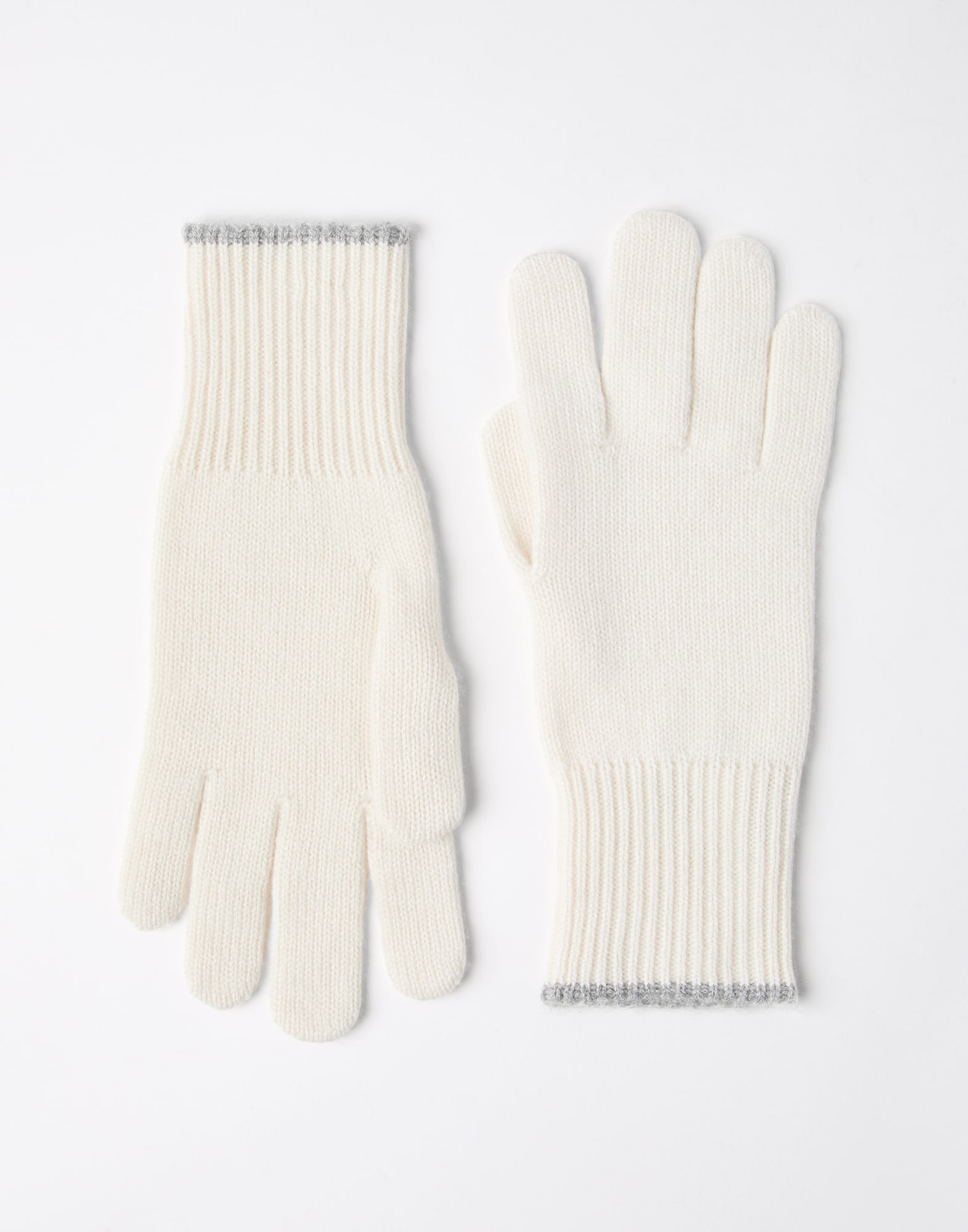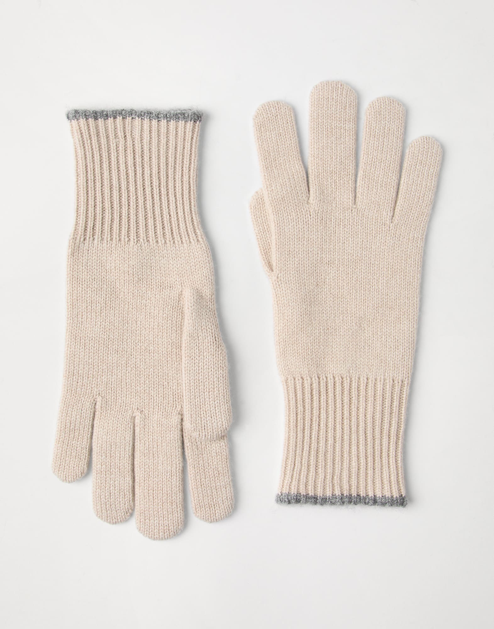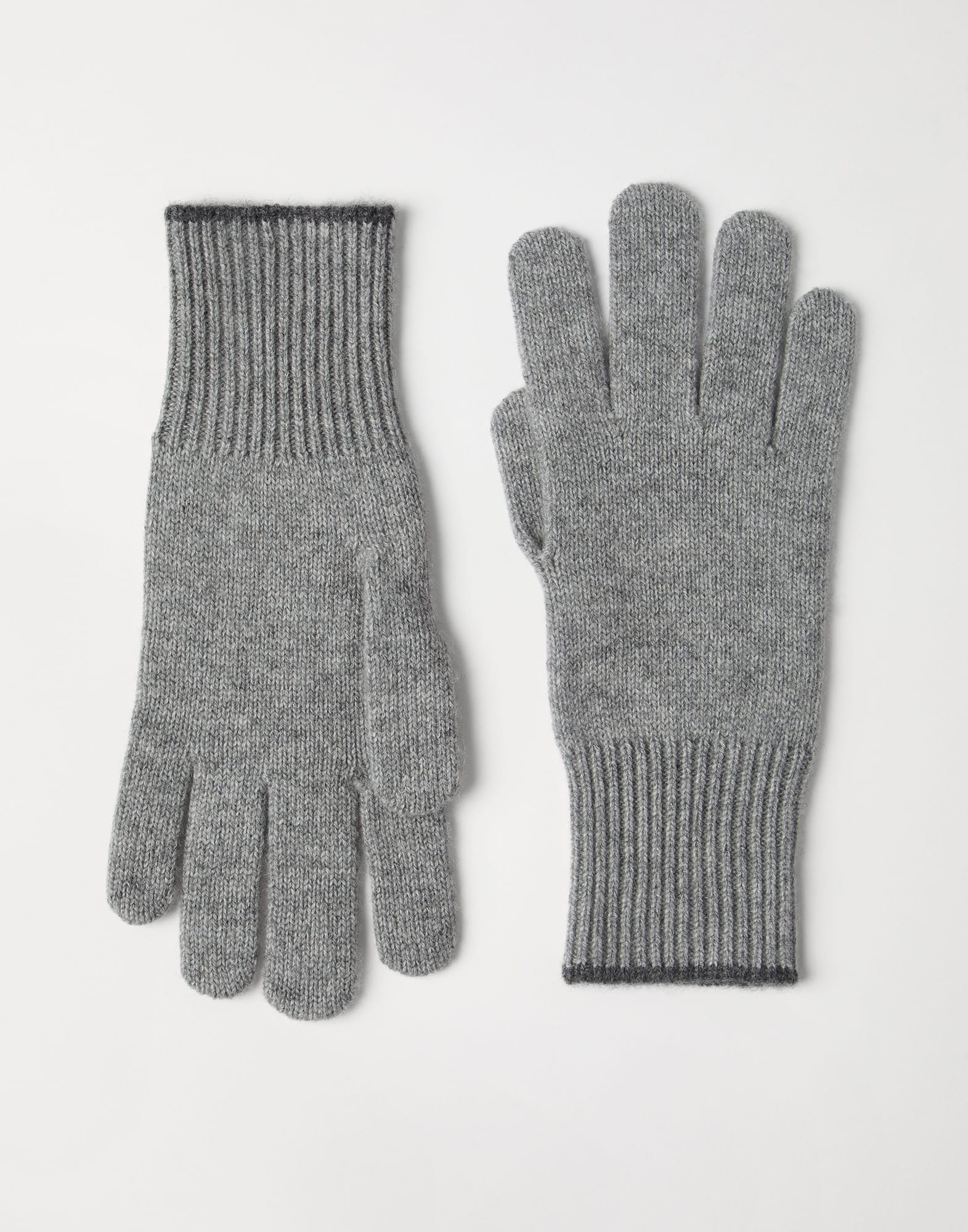 The quality of Brunello Cucinelli materials enriches the pure cashmere gloves, a warm and comfortable accessory to guarantee protection during cold winter days. Contrasting trim along the edges add a touch of color.