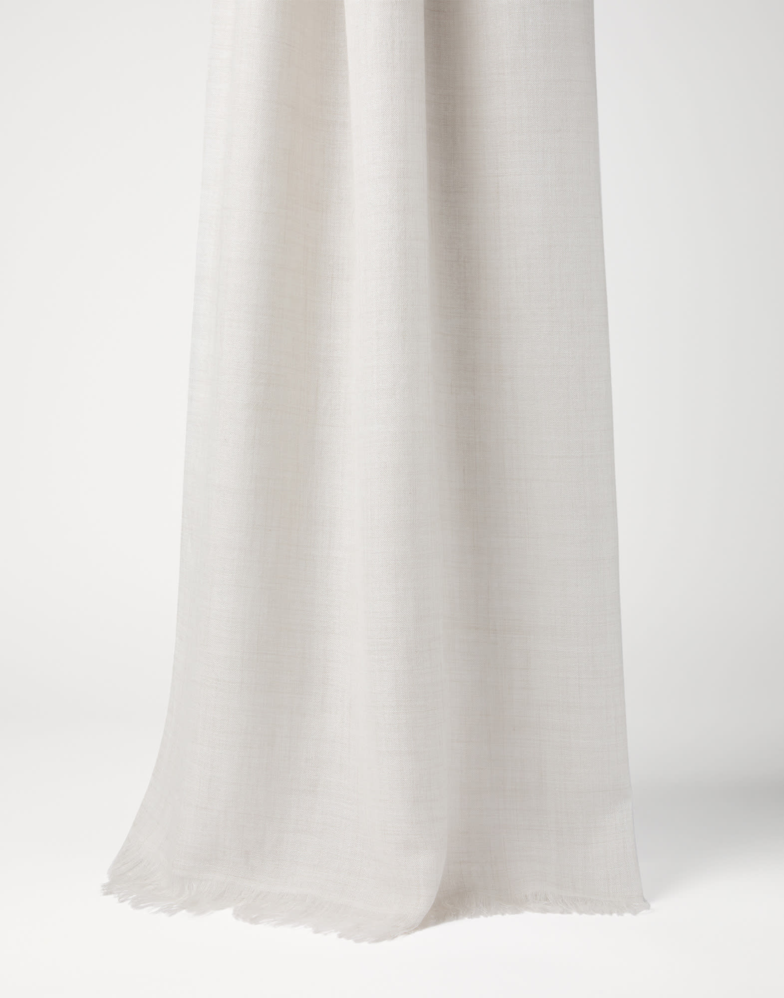 The quality of Brunello Cucinelli materials enhances the style of the scarf with a sophisticated touch. The ulltra-soft, lightweight and slightly transparent effect of the precious cashmere and silk yarn enriches the season’s colors with a delicate effect.