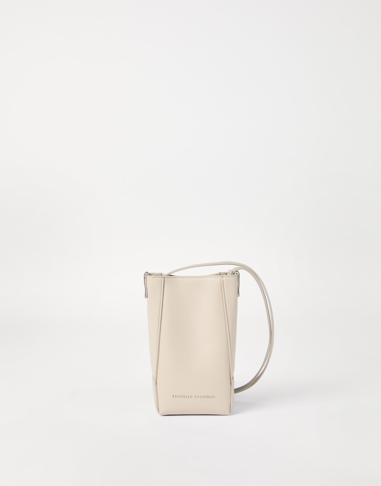 Un nuevo accesorio enriquece las combinaciones de la temporada con un toque práctico y contemporáneo al mismo tiempo. La funda para móvil BC Duo está confeccionada en una refinada piel de becerro, con una textura muy suave que enaltece las tonalidades de la temporada. Los bordes en filas de Monile brillante complementan el accesorio con un detalle luminoso, al más puro estilo Brunello Cucinelli.