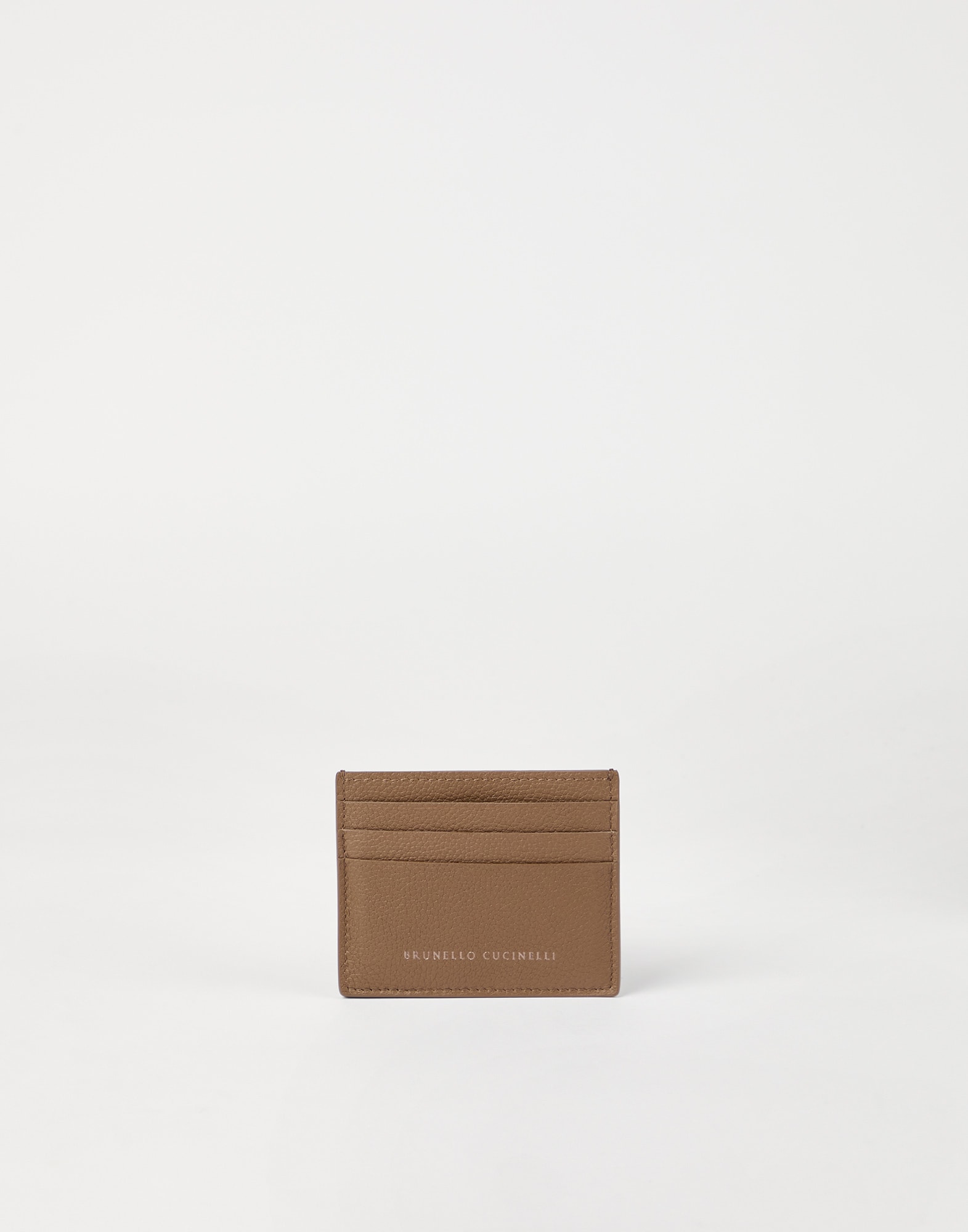 Los materiales refinados definen el estilo del tarjetero de piel con grano. La piel especial enaltece las ligeras irregularidades que confieren un delicado efecto tridimensional al accesorio. El tarjetero, que cuenta con varios compartimientos para tarjetas, se complementa con el emblemático logotipo Brunello Cucinelli.