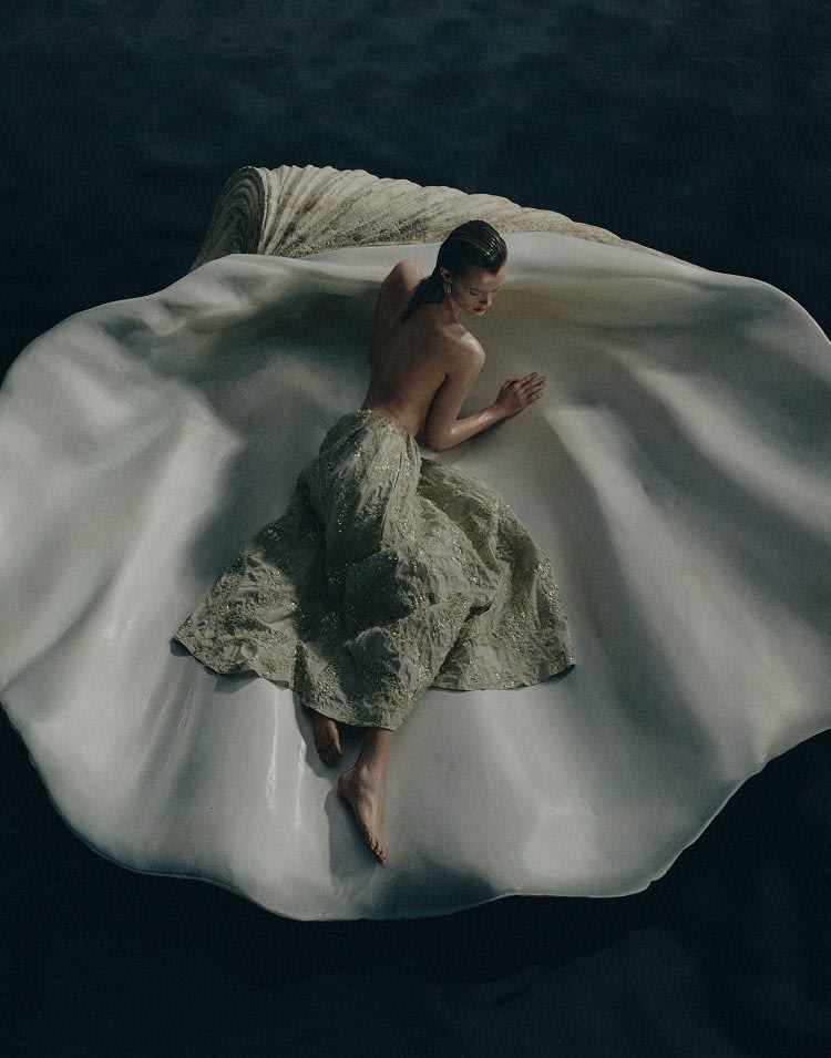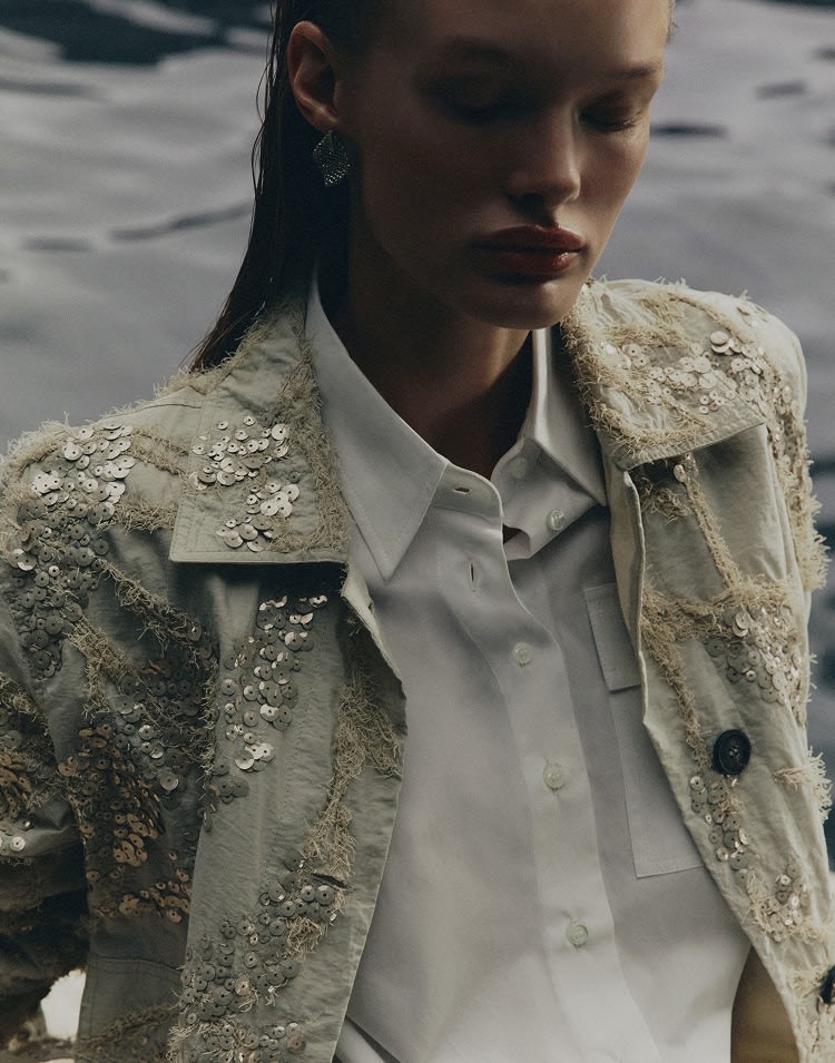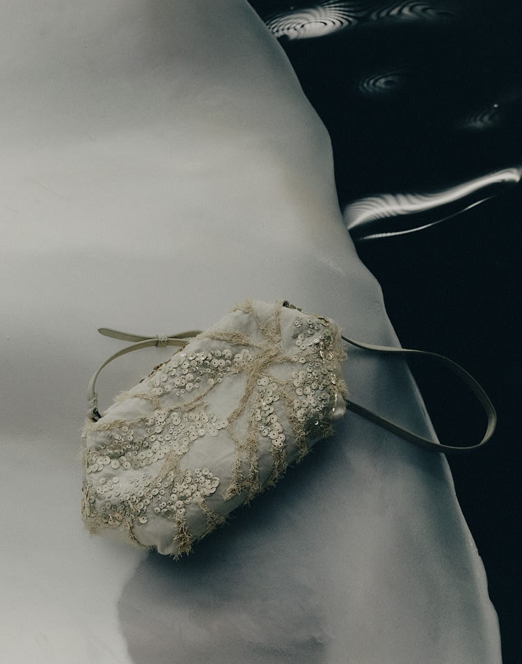Inspirado en los reflejos del agua en el fondo marino, el nuevo bordado de temporada, Dazzling Seabed Embroidery, enriquece las creaciones con un detalle luminoso y texturizado.