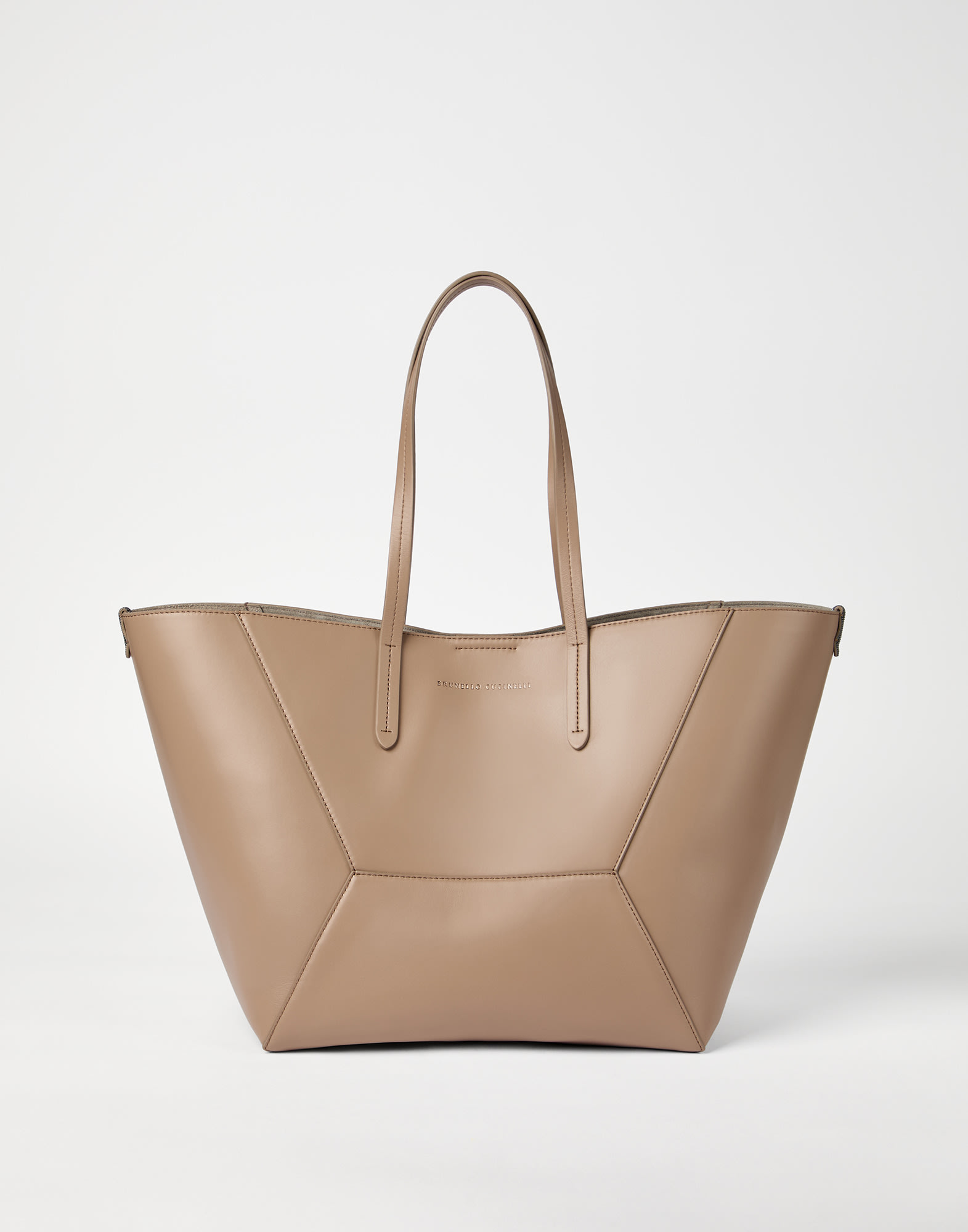 Le sac BC Duo en cuir de veau interprète les sacs classiques à usage quotidien en pur style Brunello Cucinelli. Le cuir prestigieux met en valeur les tons de la saison avec sa texture fournie et homogène, en faisant ressortir les coutures apparentes qui accentuent les lignes carrées et minimalistes. Deux lacets intérieurs sur les côtés permettent de modifier, en les attachant, la forme du sac et de le rendre plus compact. Deux broderies en Modèle définissent le design avec une délicate note de lumière féminine.