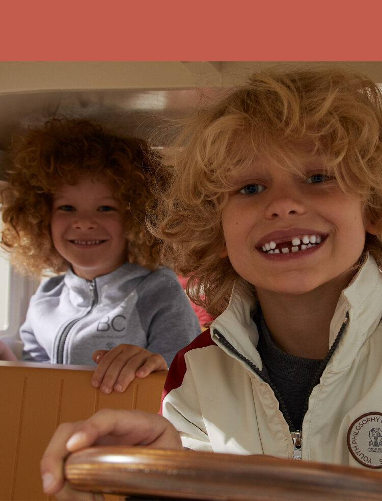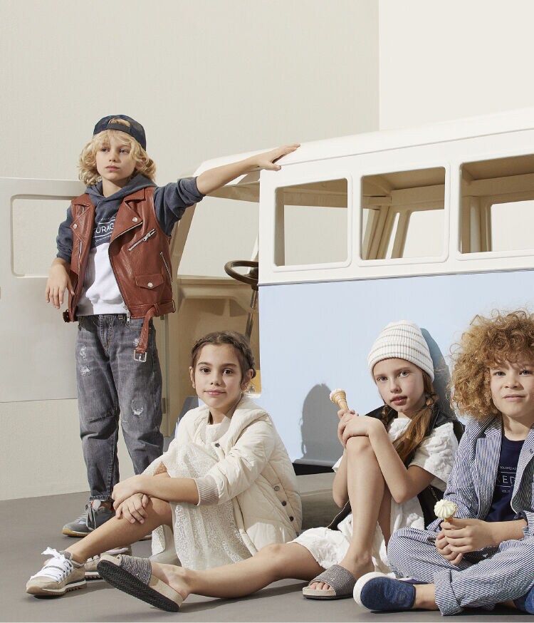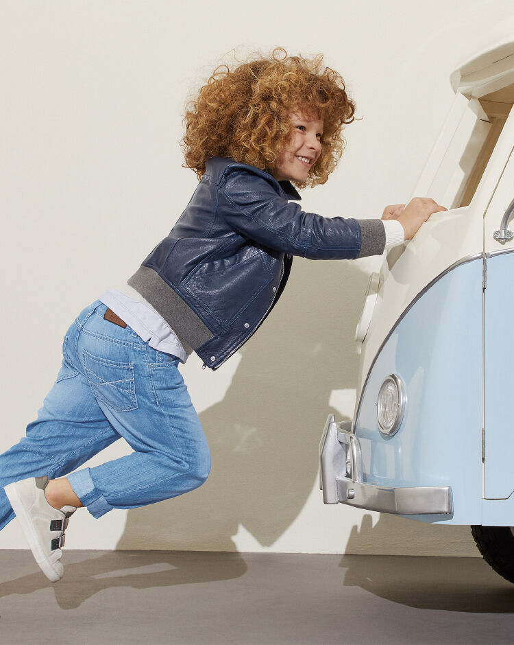 Des manteaux en cuir aux jupes en tulle, en passant par la ligne Travelwear et la bonneterie aux fils naturels, pour arriver aux smokings et aux vêtements brodés, les pièces de la collection sont pensées pour suivre les plus petits jour après jour, dans leurs aventures quotidiennes, comme dans les moments spéciaux. Le tout est à l’enseigne du prestige des matériaux et des travaux Fabriqué en Italie, des éléments emblématiques qui accompagnent depuis toujours les collections Brunello Cucinelli.
