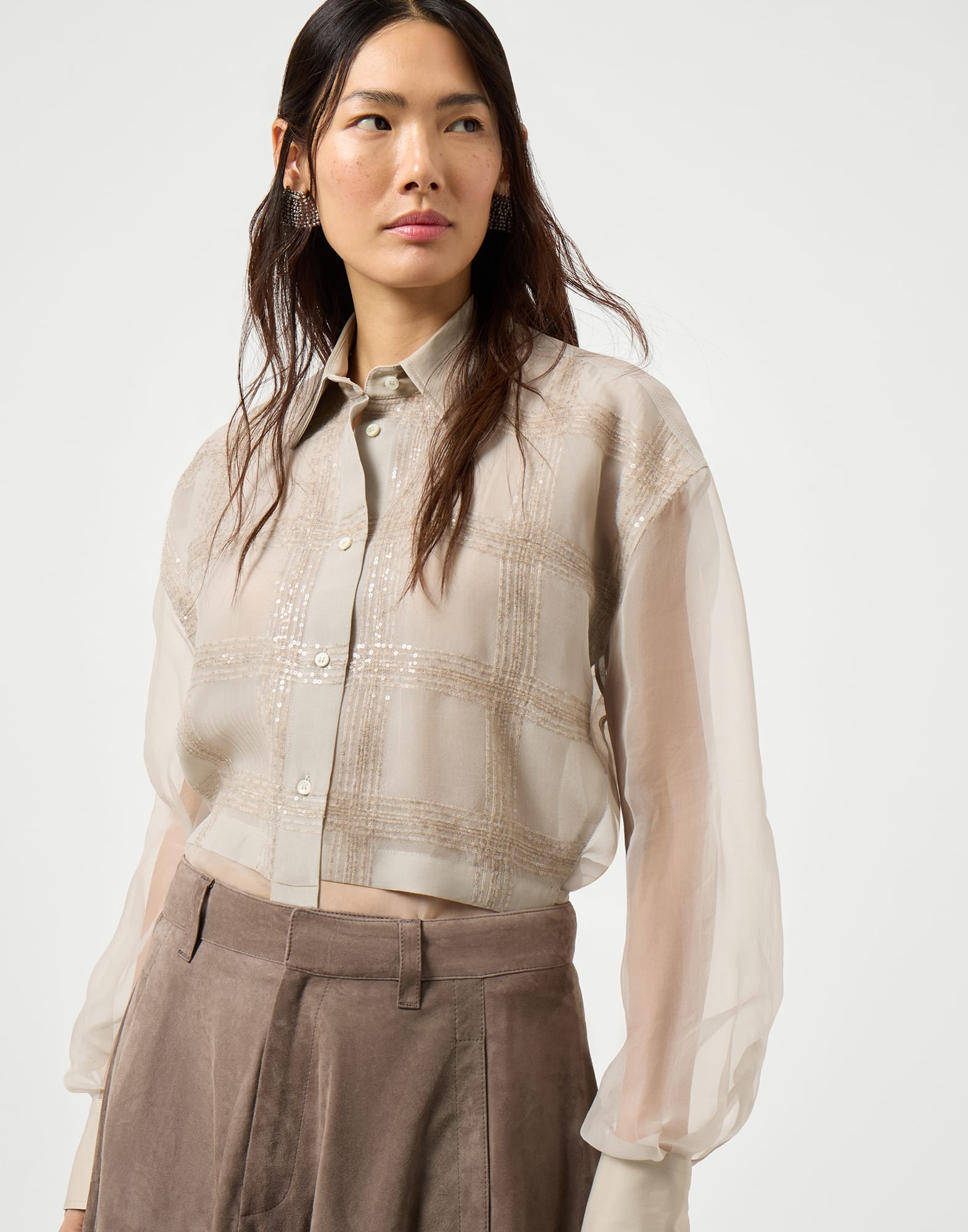 Chemise Layered en soie Crispy, broderie Dazzling Checks