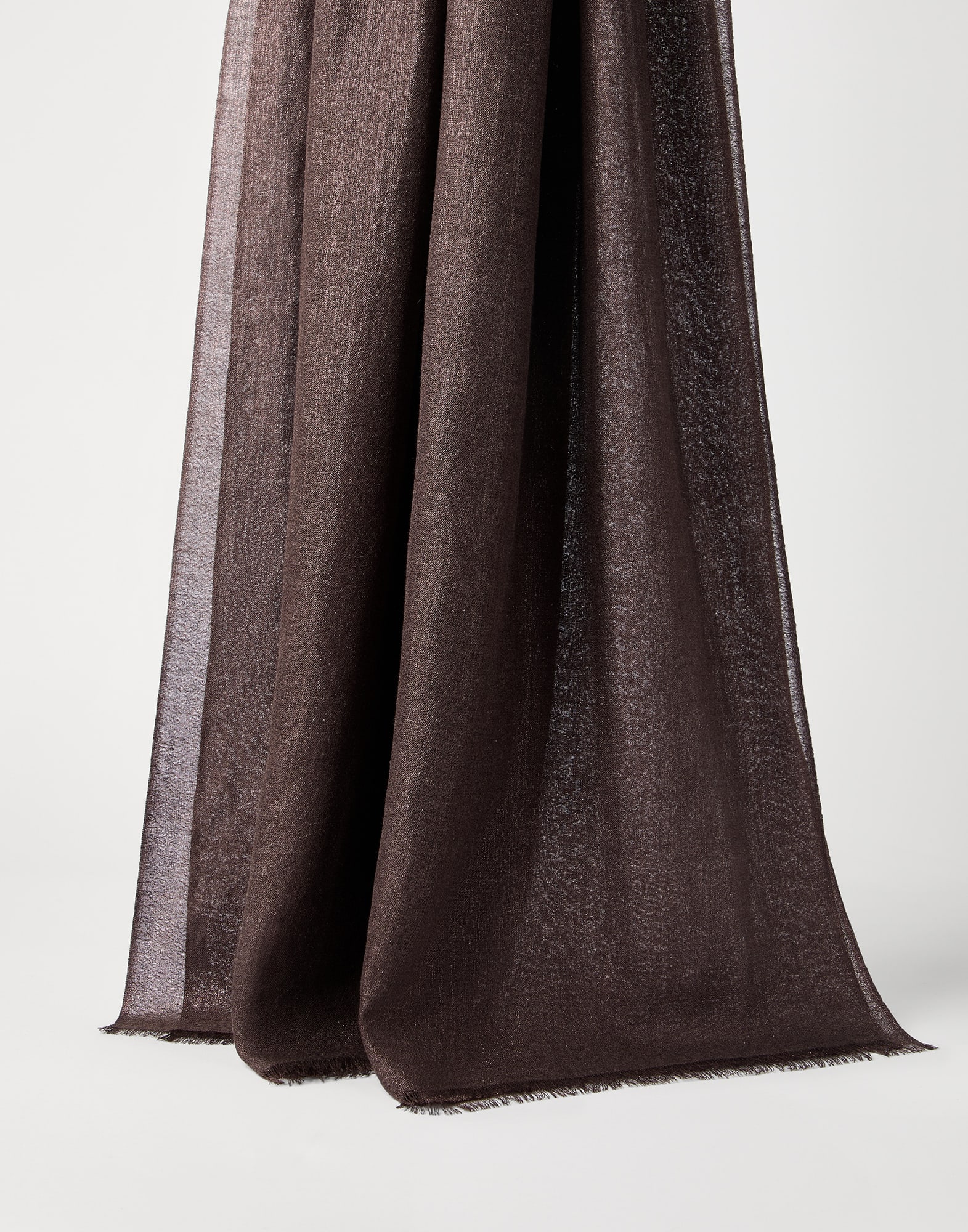 La qualité des matières Brunello Cucinelli exaltent le style de l’écharpe avec une touche raffinée. Les reflets brillants diffusés par le fil lamé se mêlent à l’effet moelleux et enveloppant des fibres naturelles nobles.