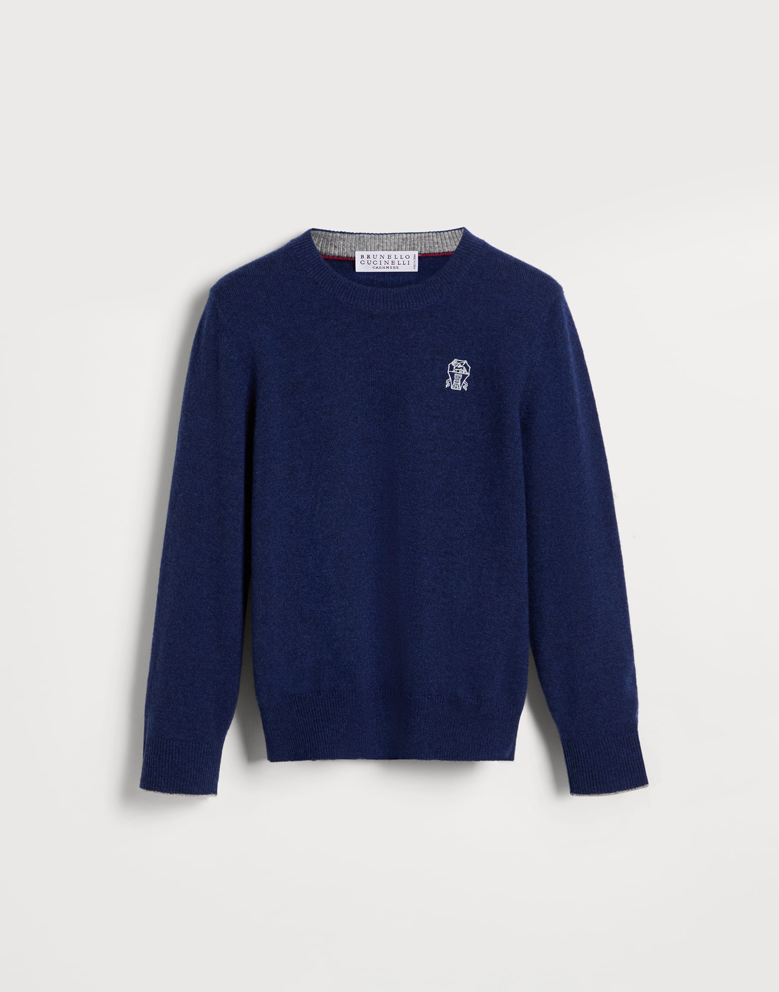 Nella maglieria per Bambino si riconoscono la cura del dettaglio, il pregio dei materiali e il comfort che contraddistinguono lo stile Brunello Cucinelli. Il soffice filato in puro cashmere arricchisce lo stile essenziale di questa maglia, leggera e avvolgente. Il dettaglio del logo ricamato sul petto completa lo stile del capo con un elemento iconico.