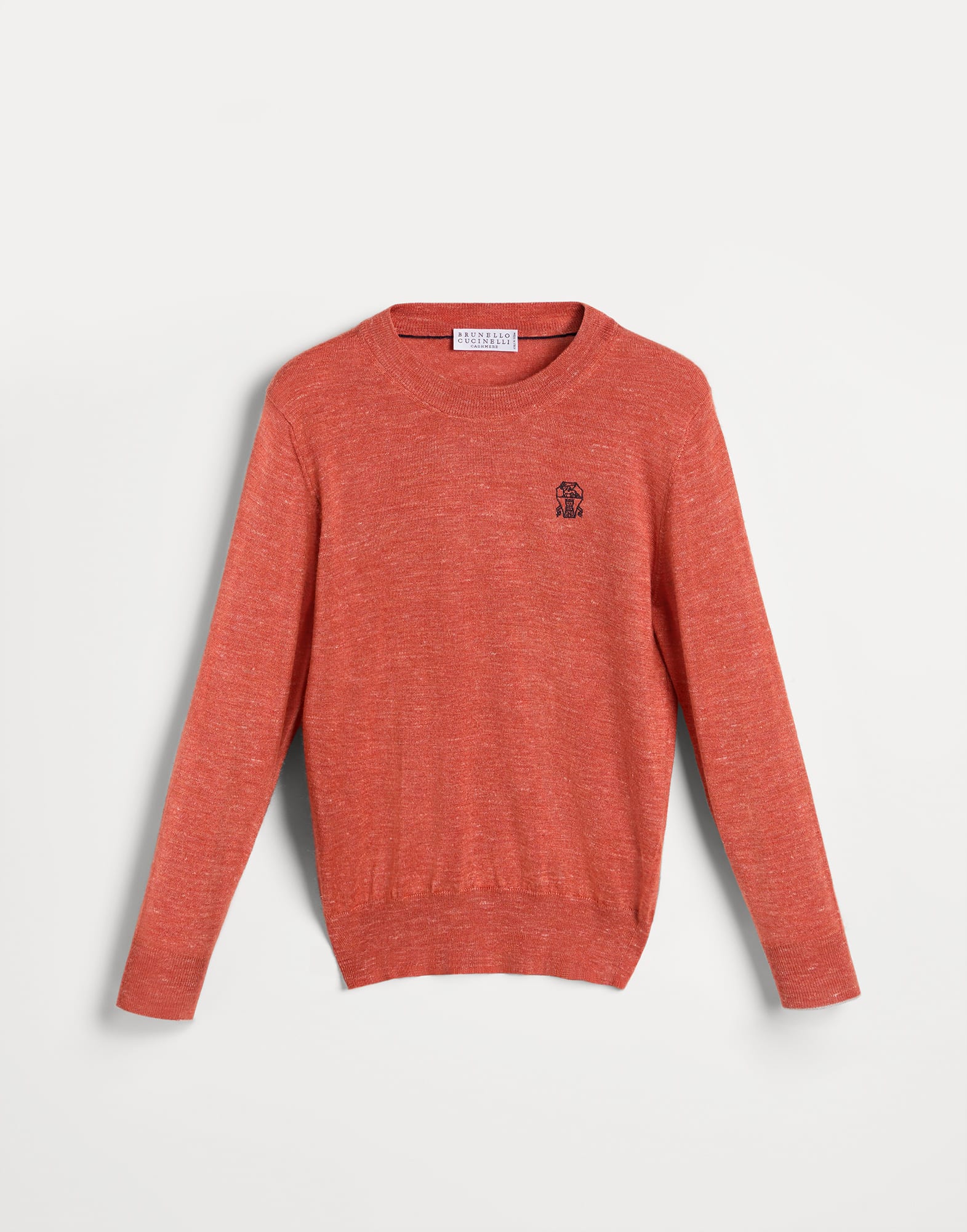 La maglia leggera reinterpreta una silhouette classica con un tocco spigliato. Composta da un blend di cashmere, seta e lino, offre una mano morbida che si adatta perfettamente alle linee regolari e confortevoli del capo. Il logo araldico, ricamato sul petto, aggiunge una nota iconica al modello.