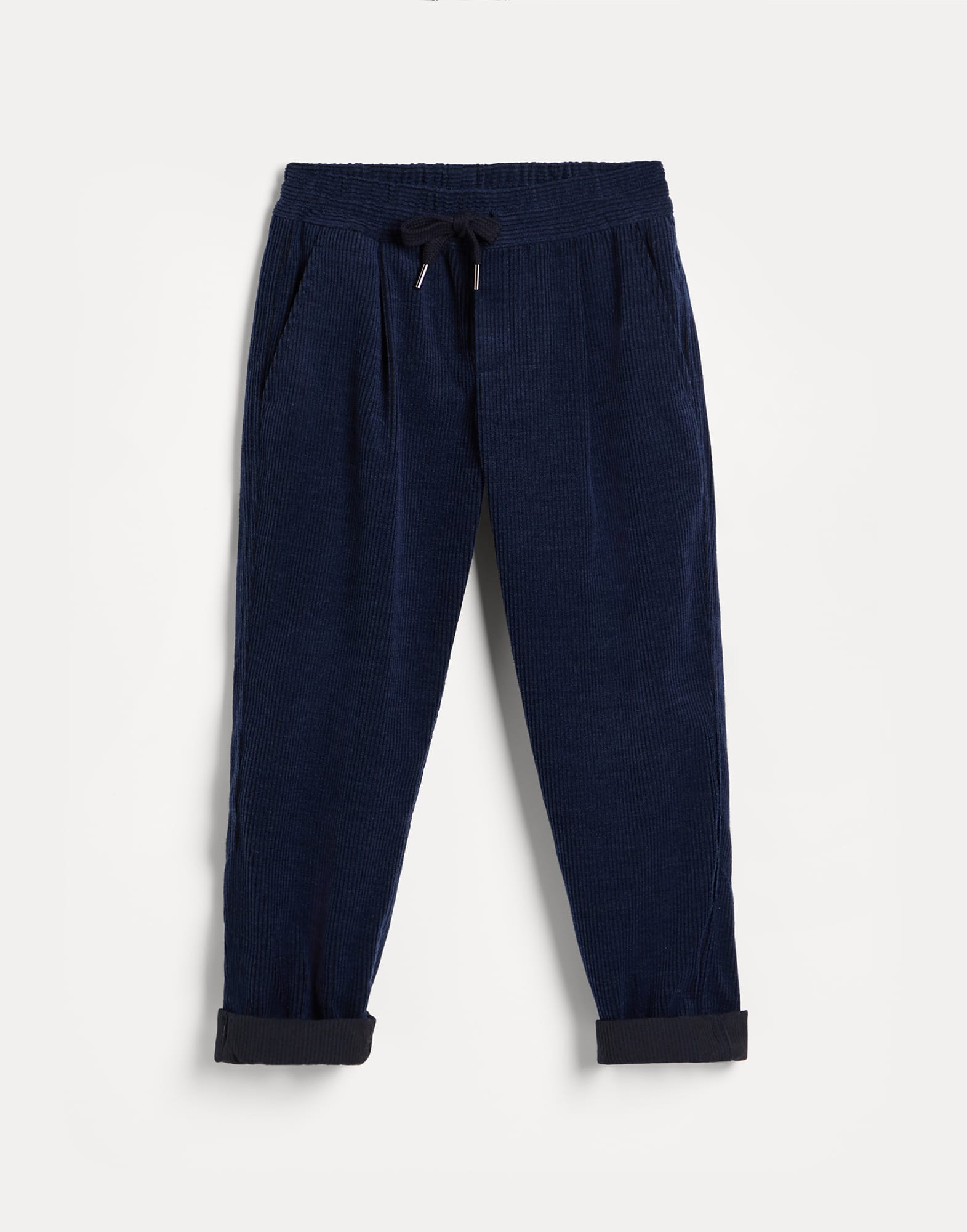 Pantalone in velluto a coste di lana, seta e cashmere con coulisse