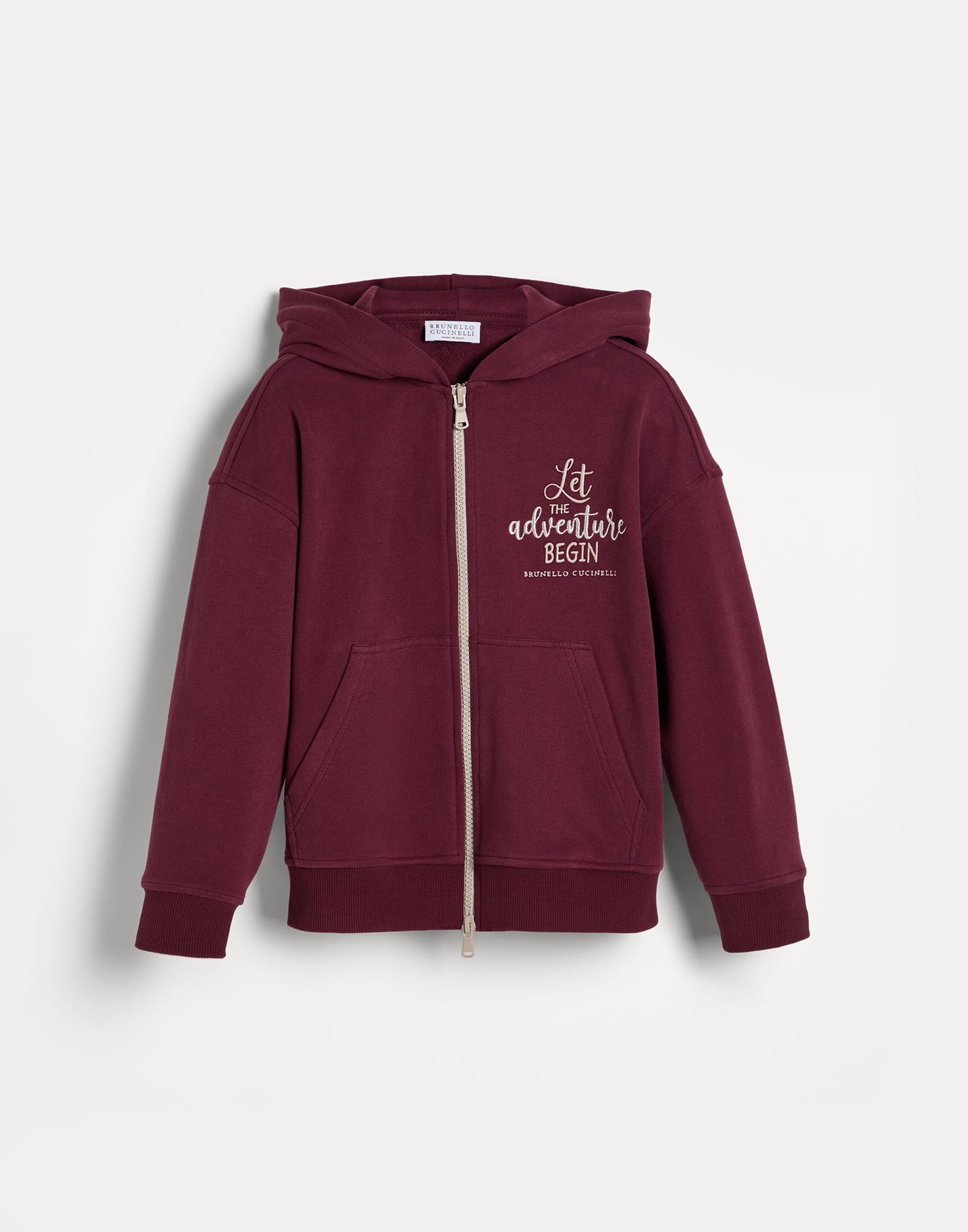 Topwear in felpa Smooth di cotone con zip, ricamo e cappuccio