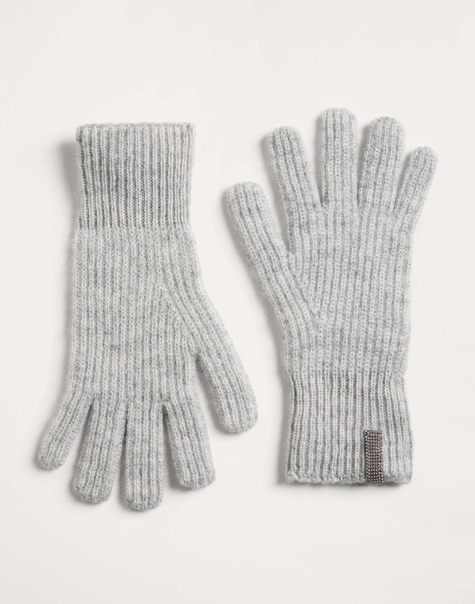 Il pregiato filato in puro cashmere infonde un tocco raffinato ai guanti, ideali per completare i look invernali con uno stile ricercato. Una riga ricamata in file di brillante monile completa l'accessorio con un dettaglio prezioso, in puro stile Brunello Cucinelli.