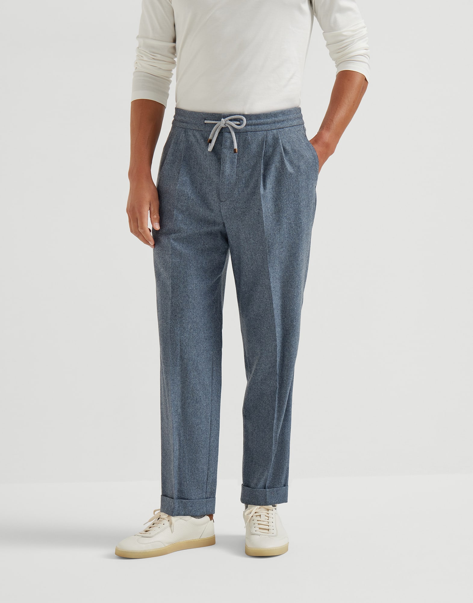 Pantalone leisure fit in flanella di lana vergine con coulisse e doppia pince Pantalone con doppia pince e coulisse