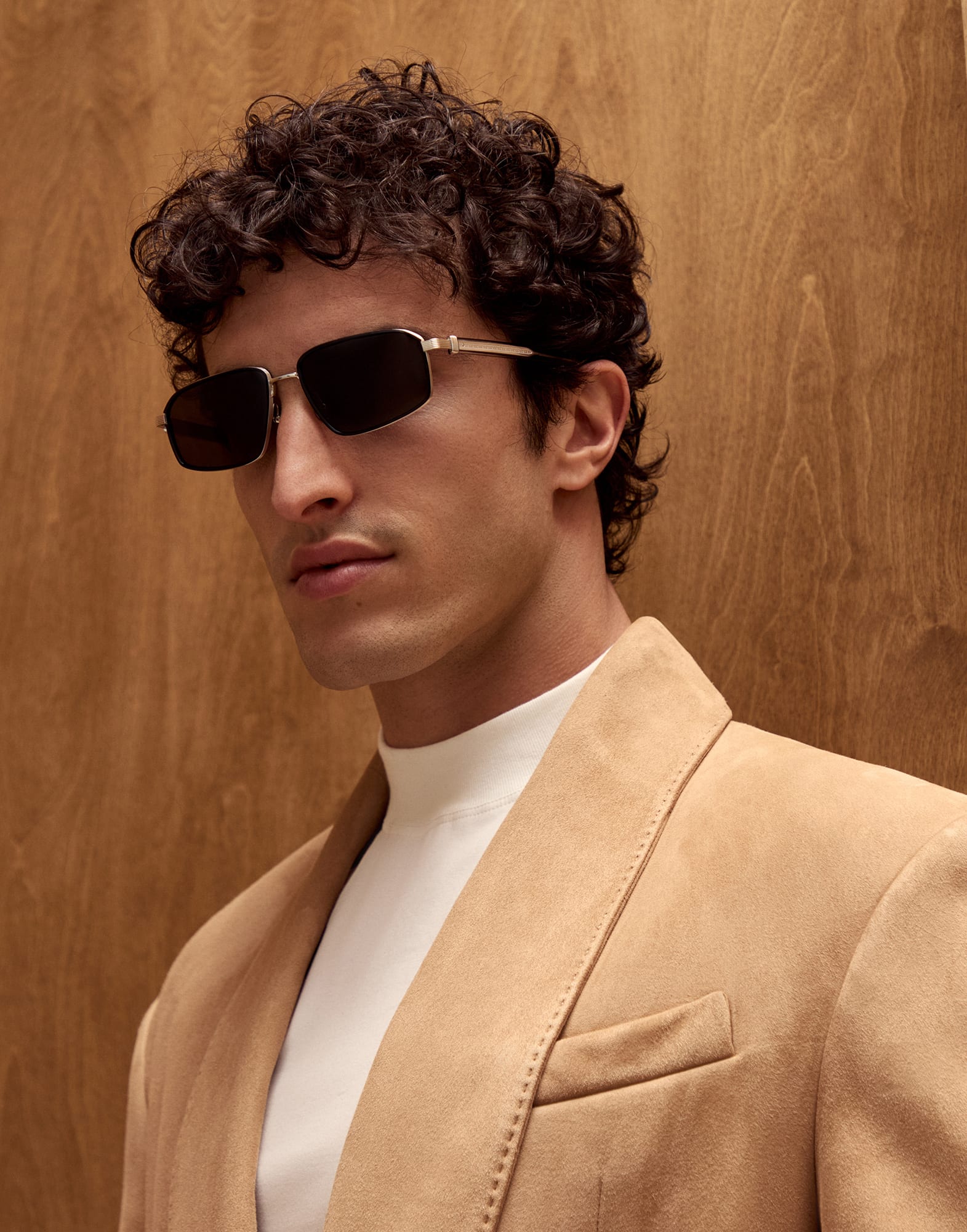 Un design raffinato, impreziosito da dettagli esclusivi e materiali pregiati, definisce l’occhiale da sole Jarama in titanio placcato oro bianco 18k con lenti polarizzate. Le linee geometriche sono esaltate dalla raffinatezza delle lavorazioni artigianali dell'occhialeria giapponese come la scanalatura sulla parte iniziale delle aste in acetato e sui terminali, insieme al motivo inciso manualmente a filigrana che arricchisce l'anima in metallo, ispirato alle collezioni ready-to-wear Brunello Cucinelli. Una sottile incisione laser all’interno dell’asta sigla il modello con la firma "Jarama". L'occhiale fa parte della linea "Intarsia Rays" in cui preziose lavorazioni manuali e dettagli tridimensionali si susseguono in un insieme bilanciato ed elegante. Elementi intarsiati attirano la luce dei raggi e sottolineano la natura sofisticata di ciascun modello.