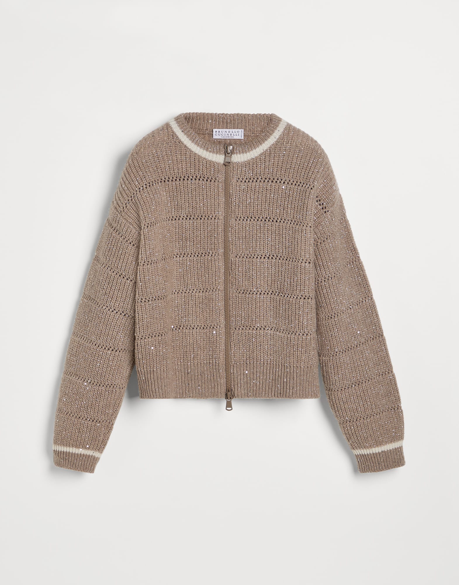 カシミヤ&ウール スパークリング&ダズリング テクスチャーハーフイングリッシュリブ ジップアップカーディガン