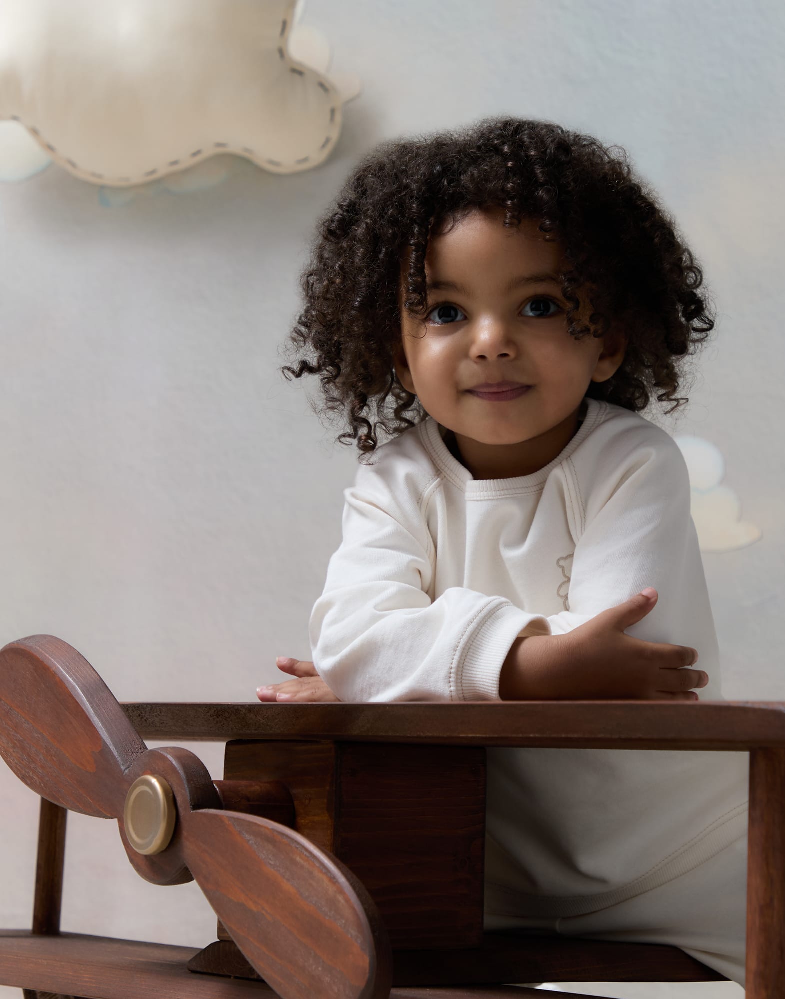 アイコニックな子グマのバーニーが、生まれたての赤ちゃんとちびっこたちの最初の冒険へ寄り添い、0歳から36ヶ月の赤ちゃんのために考案されたニューボーンシリーズの柔らかなコーディネートセットに豊かさをプラスします。このベビー用スウェットシャツは、やわらかなコットンフェルパのっ快適な質感が特徴です。子グマのバーニーをコントラストカラーで刺繍し、愛らしいタッチを加えました。