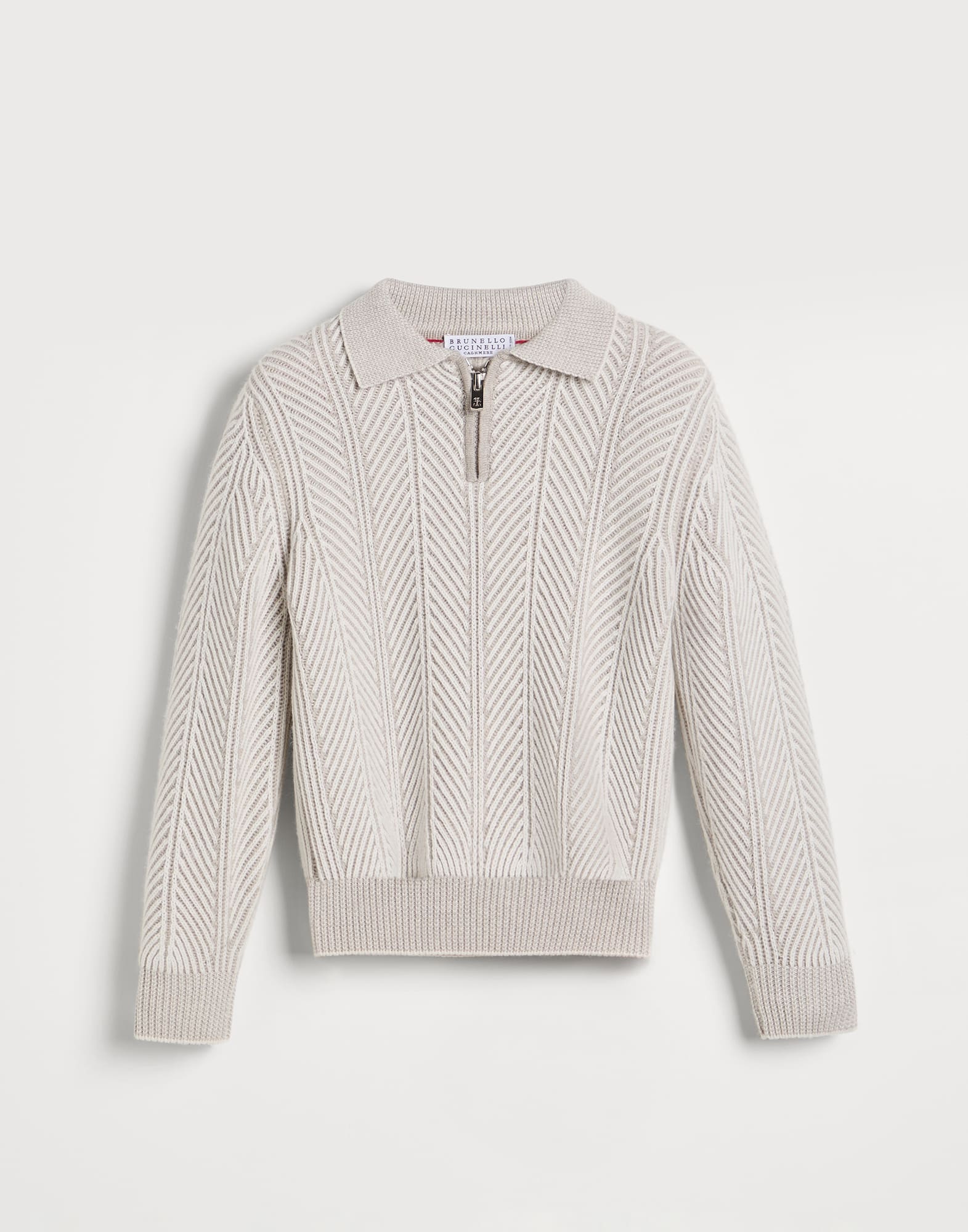 ファスナーオープニング付き カシミヤ ヴァニセ ヘリンボーンエフェクト ニットポロシャツ