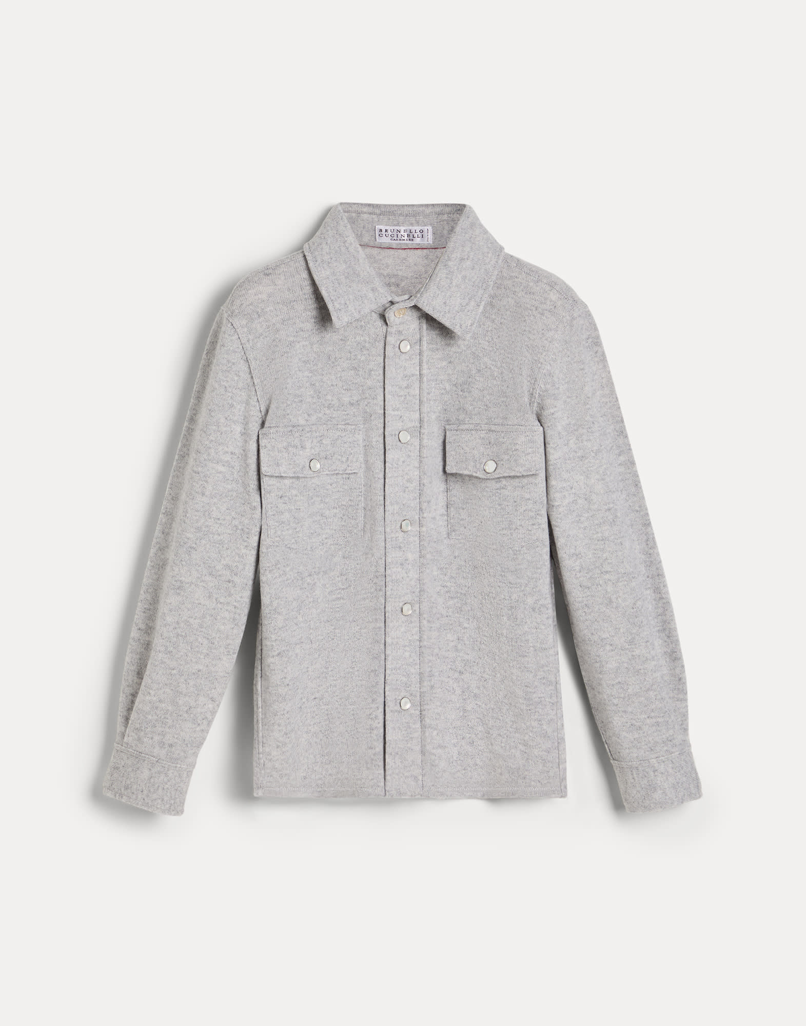 スナップボタン&チェストポケット付き バージンウール&カシミヤ&シルク ニットシャツ
