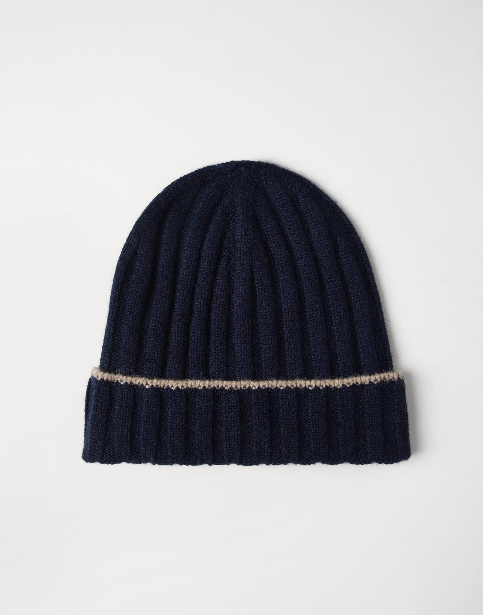 メンズ 向け ネイビーブルー カシミヤ リブニットキャップ | Brunello Cucinelli